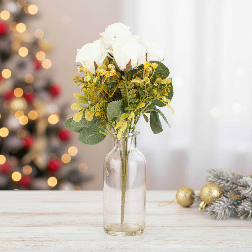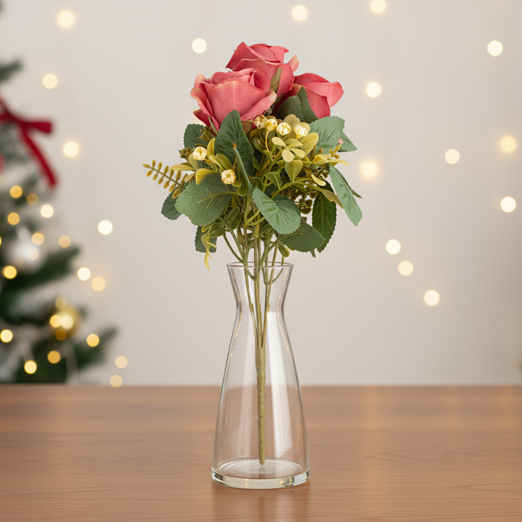Artificial Rose Bunch 7 Flowers Red 32cm