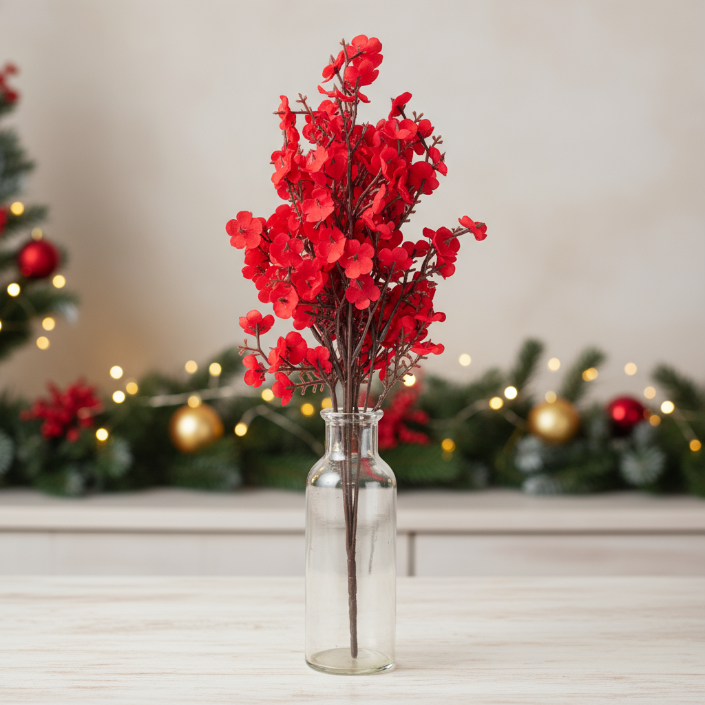 Artificial Flower Baby's Breath Silk Red 5 Branches 35cm1 Bunch
