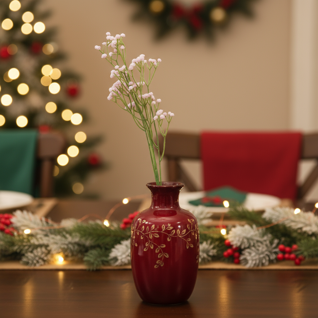 Christmas Decor Glossy Berry Bunch Stem Burgundy 30cm 1pc
