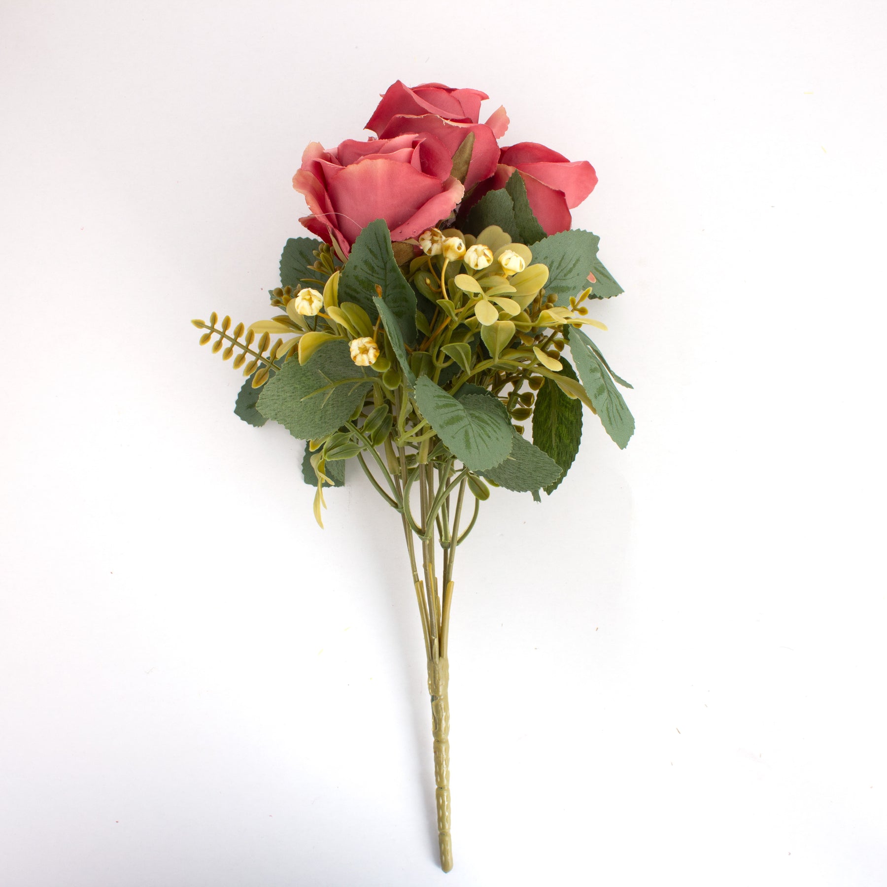 Artificial Rose Bunch 7 Flowers Coral Pink 32cm