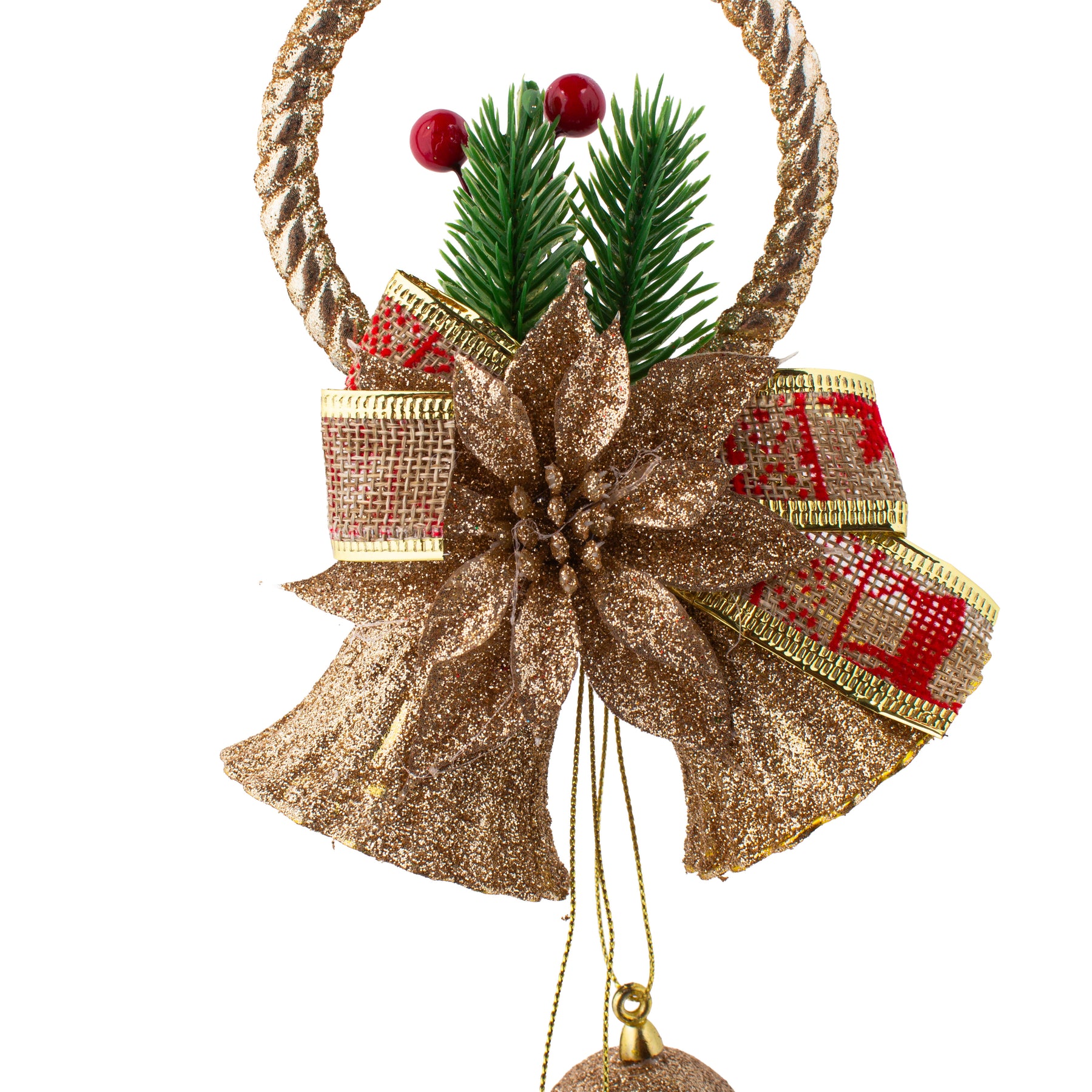 Add festive sparkle to your home with this gold glitter wall hanging, featuring shimmering jingle bells and matching baubles. Perfect for doors, walls, or mantel décor, it brings a cheerful holiday vibe to any space.