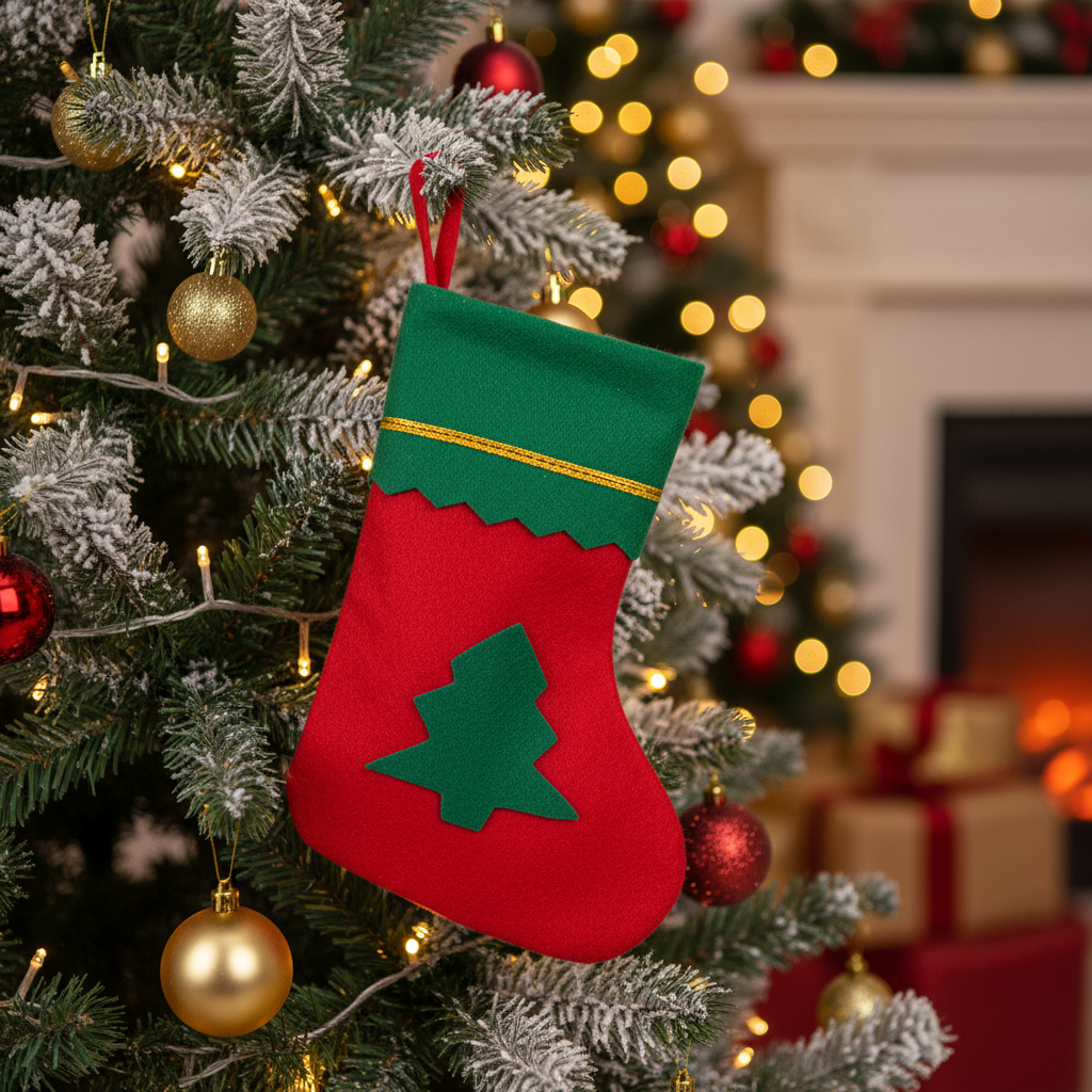 Christmas Non-woven Decorative Stocking with Loop for Hanging - Tree H20 X W15cm 1pc