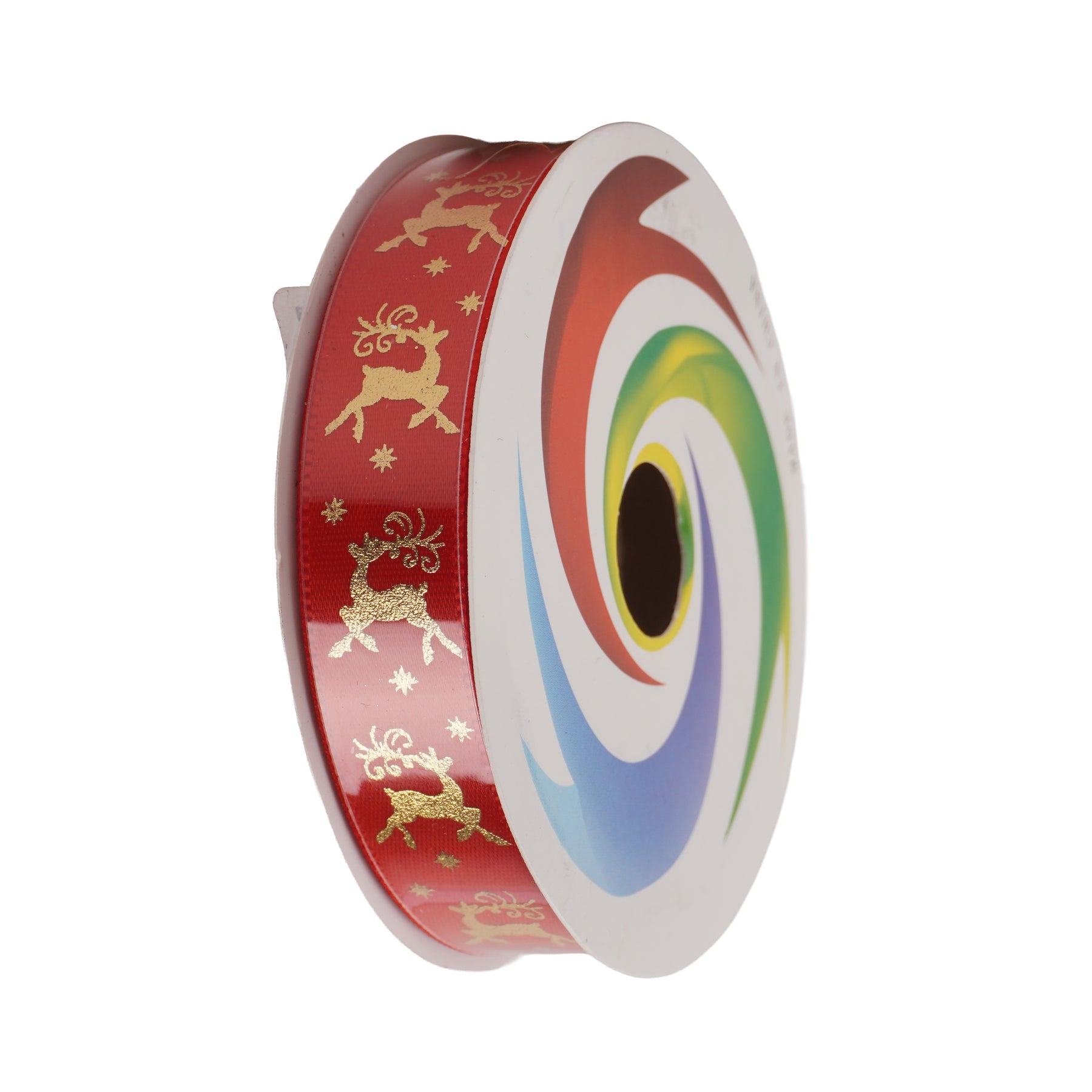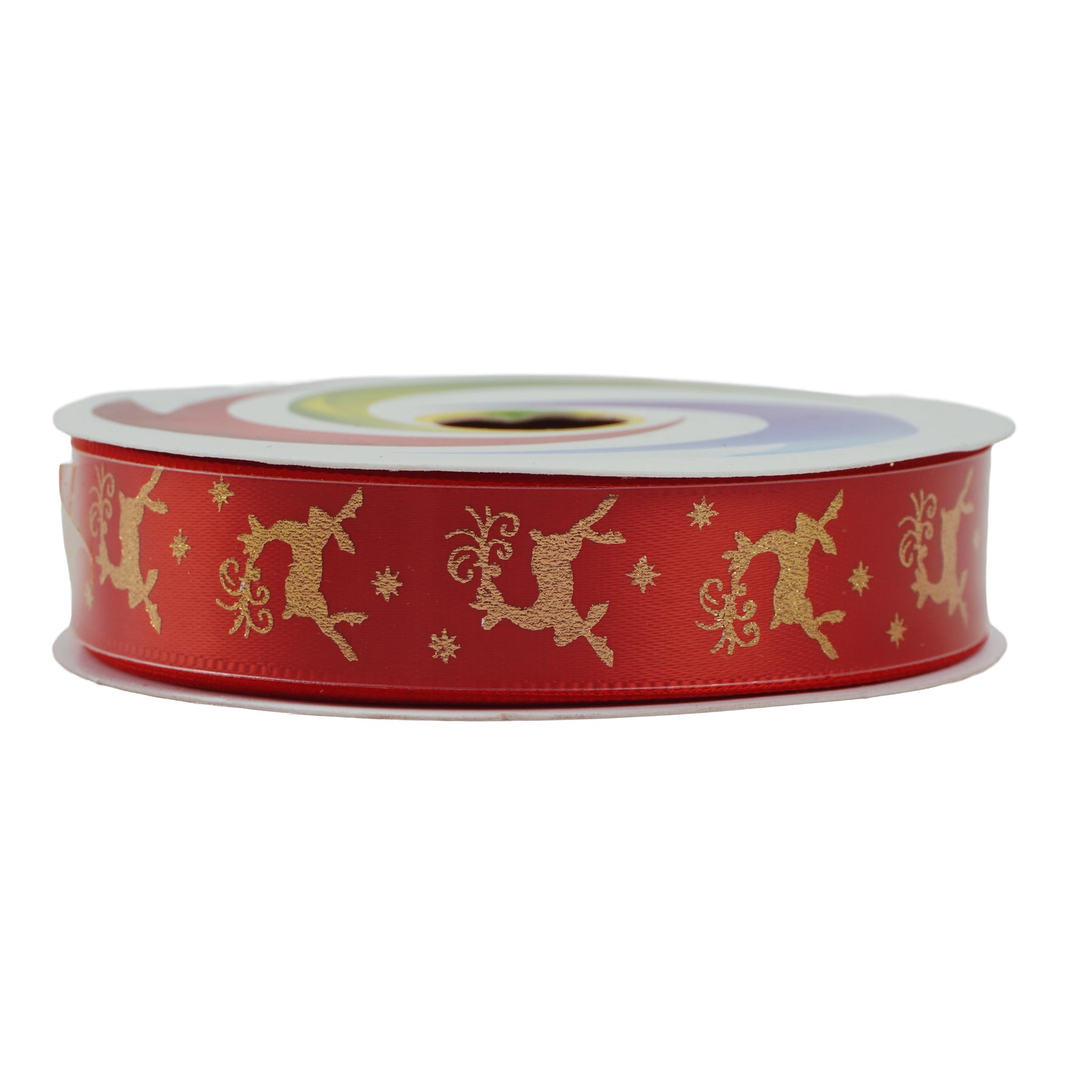 Christmas Printed Satin Ribbon Golden Reindeer 1.8mm X 2.7mtr 1pc
