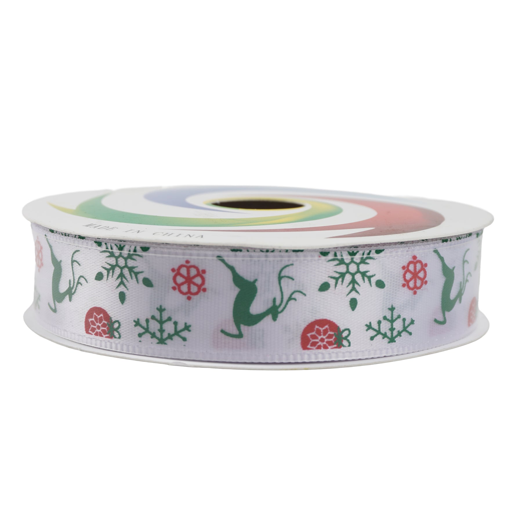 Christmas Printed Satin Ribbon Winter Reindeer 1.8mm X 2.7mtr 1pc