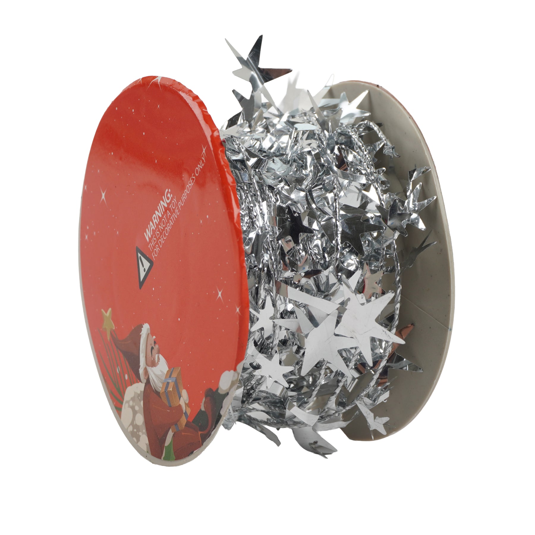 Beautifully crafted with shimmering tinsel and star accents, this flexible wired garland is perfect for decorating Christmas trees, wreaths, railings, doorways, or party spaces. Its bendable wire makes it easy to shape and style for any holiday setup.