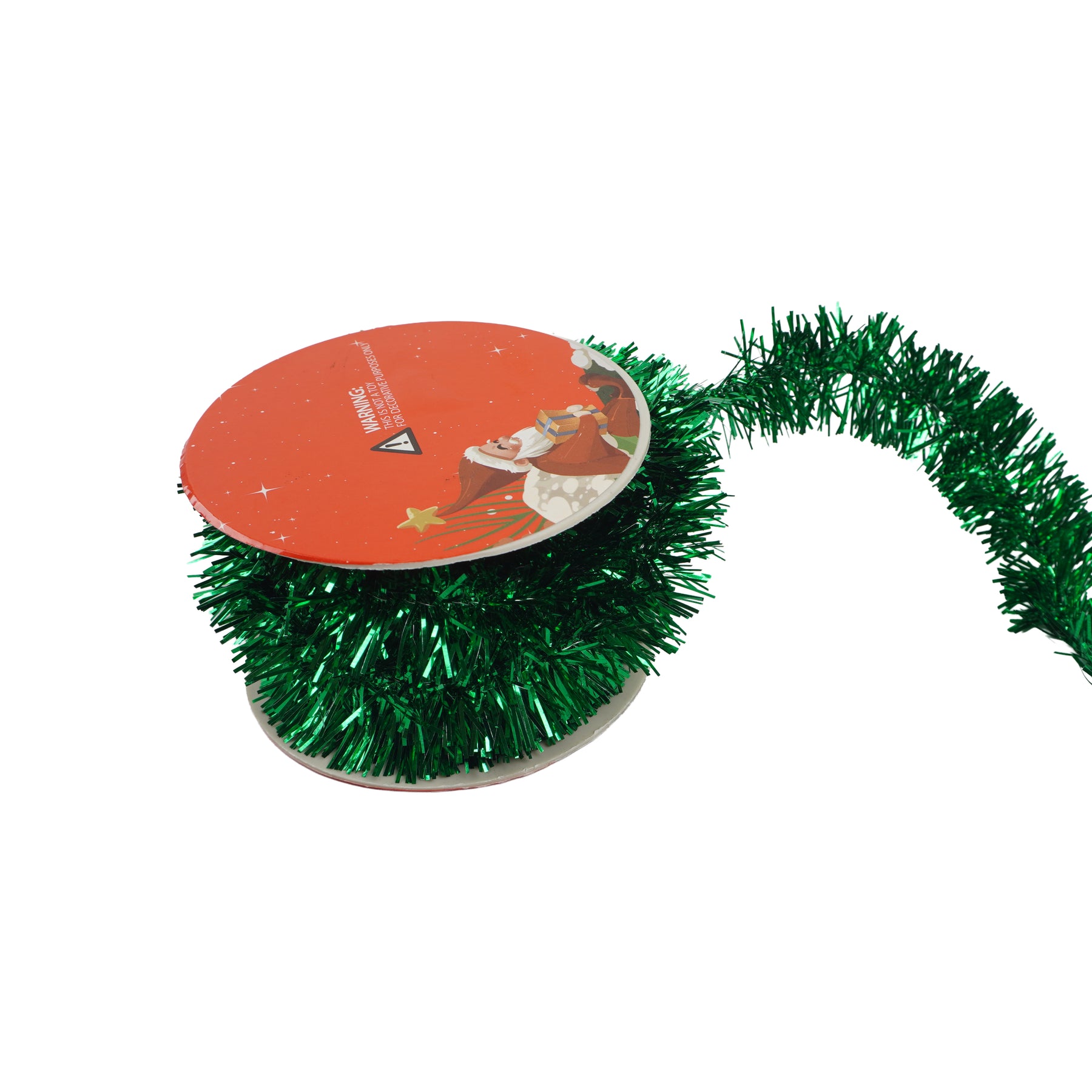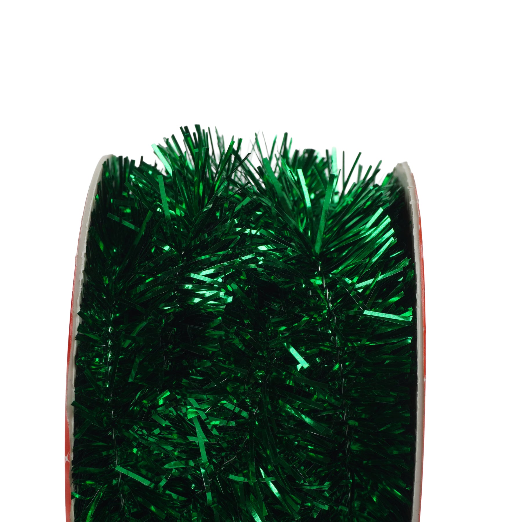 Christmas Tinsel Garland Wired Metallic Green 5m 1Roll