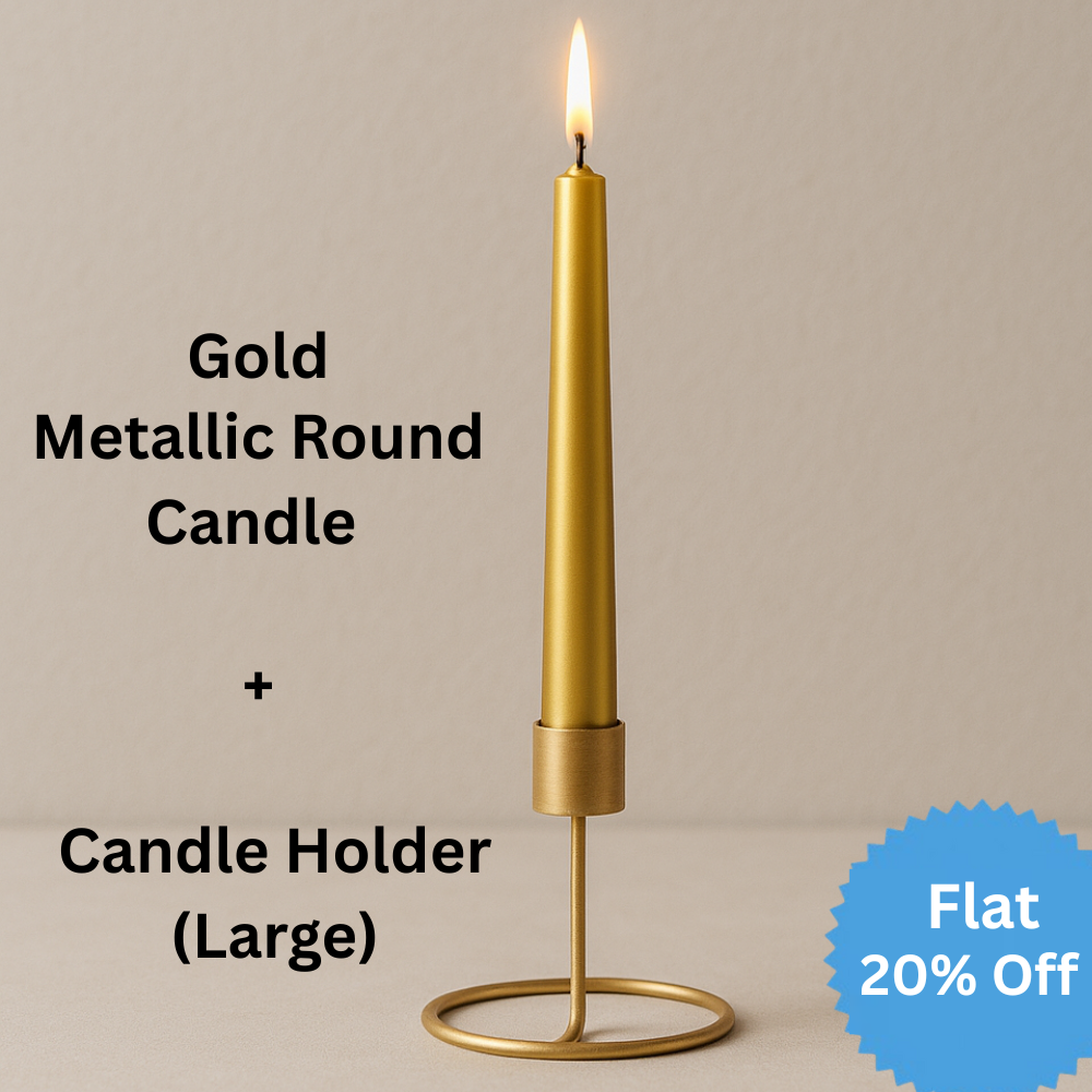 Metallic Round Candle Gold & Metal Candlestick Holder (Large) Combo