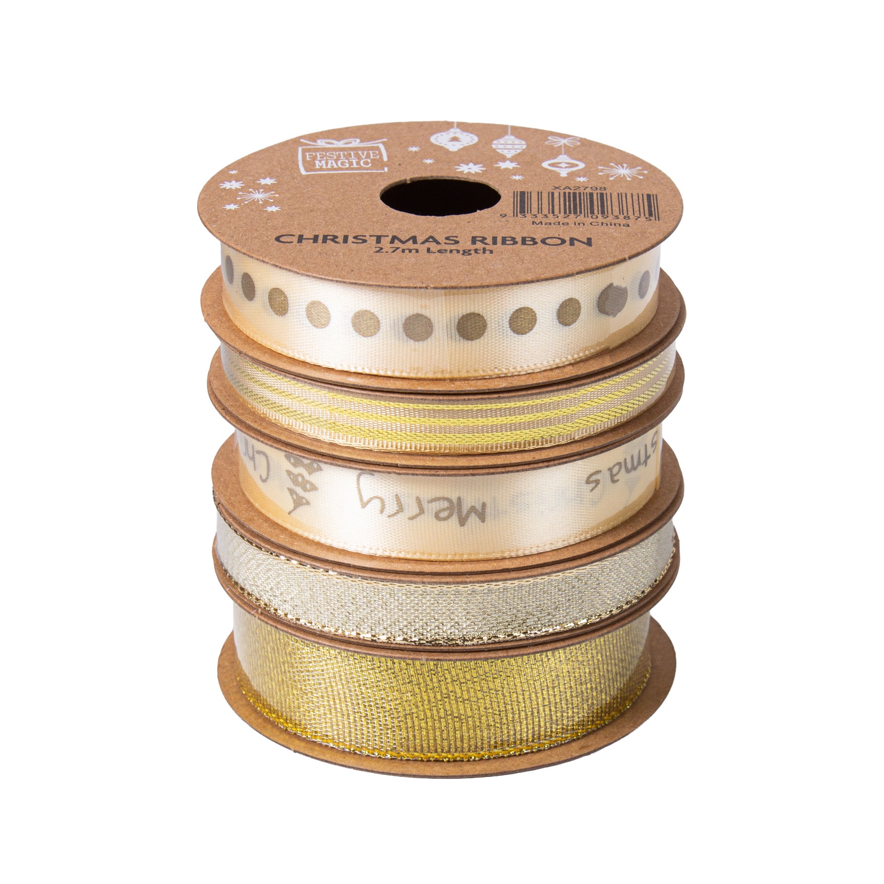 Add elegance and festive color to your Christmas gifts with this set of 5 beautiful ribbons, each measuring 2.7m. Perfect for gift wrapping, home décor, crafts, wreaths, and holiday DIY projects.