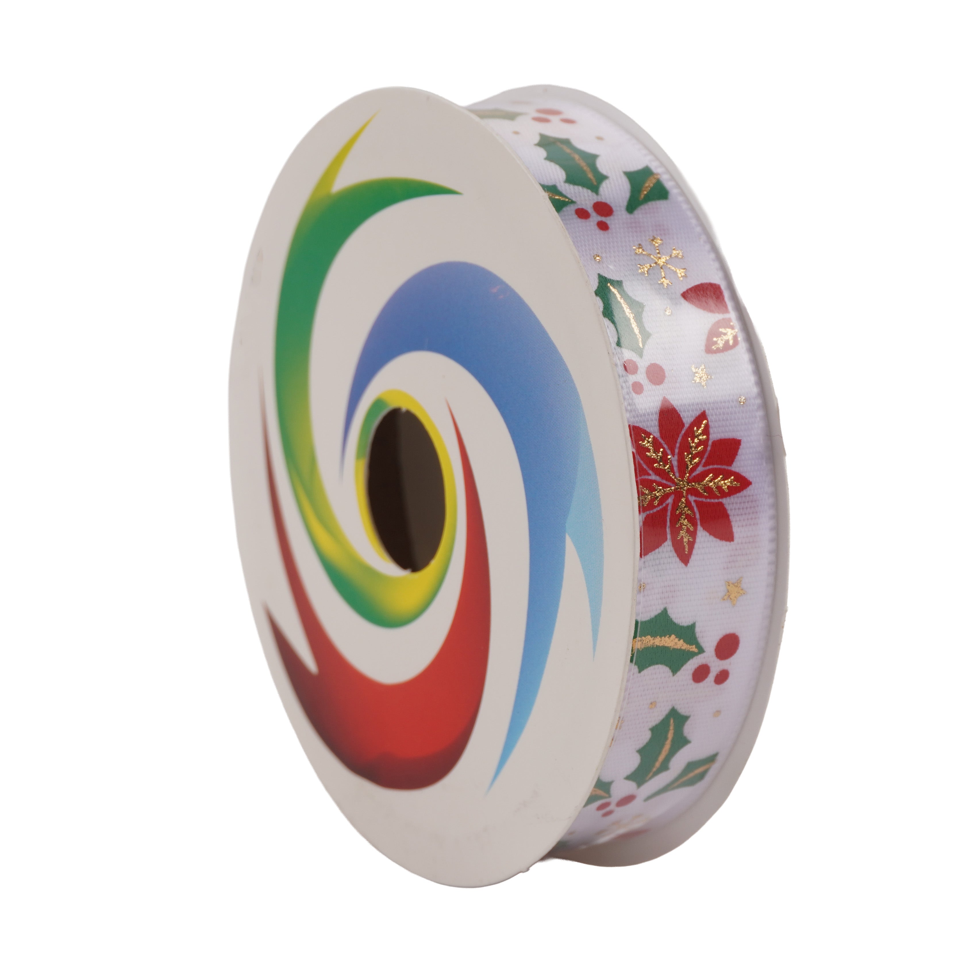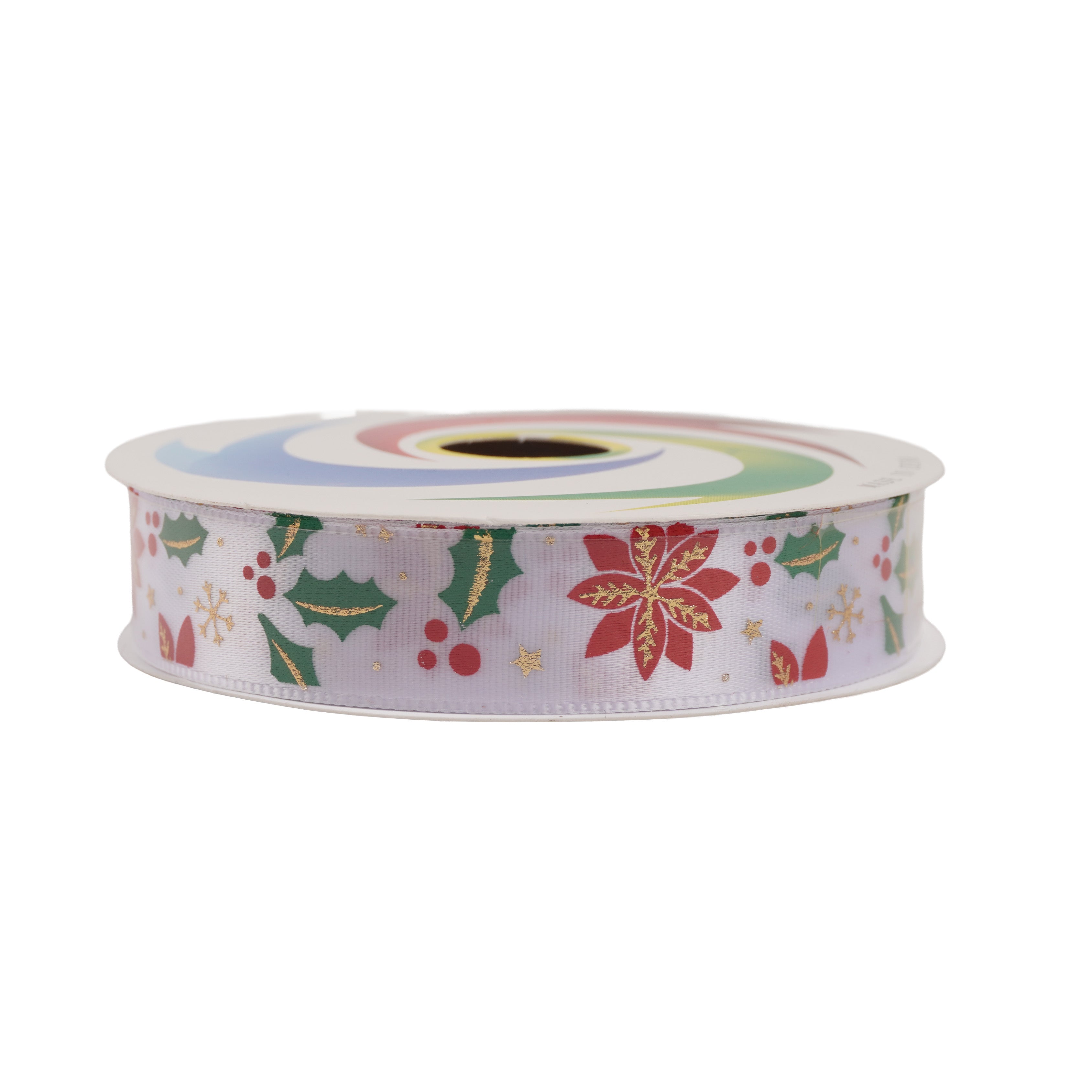 Christmas Printed Satin Ribbon Poinsettia 1.8mm X 2.7mtr 1pc