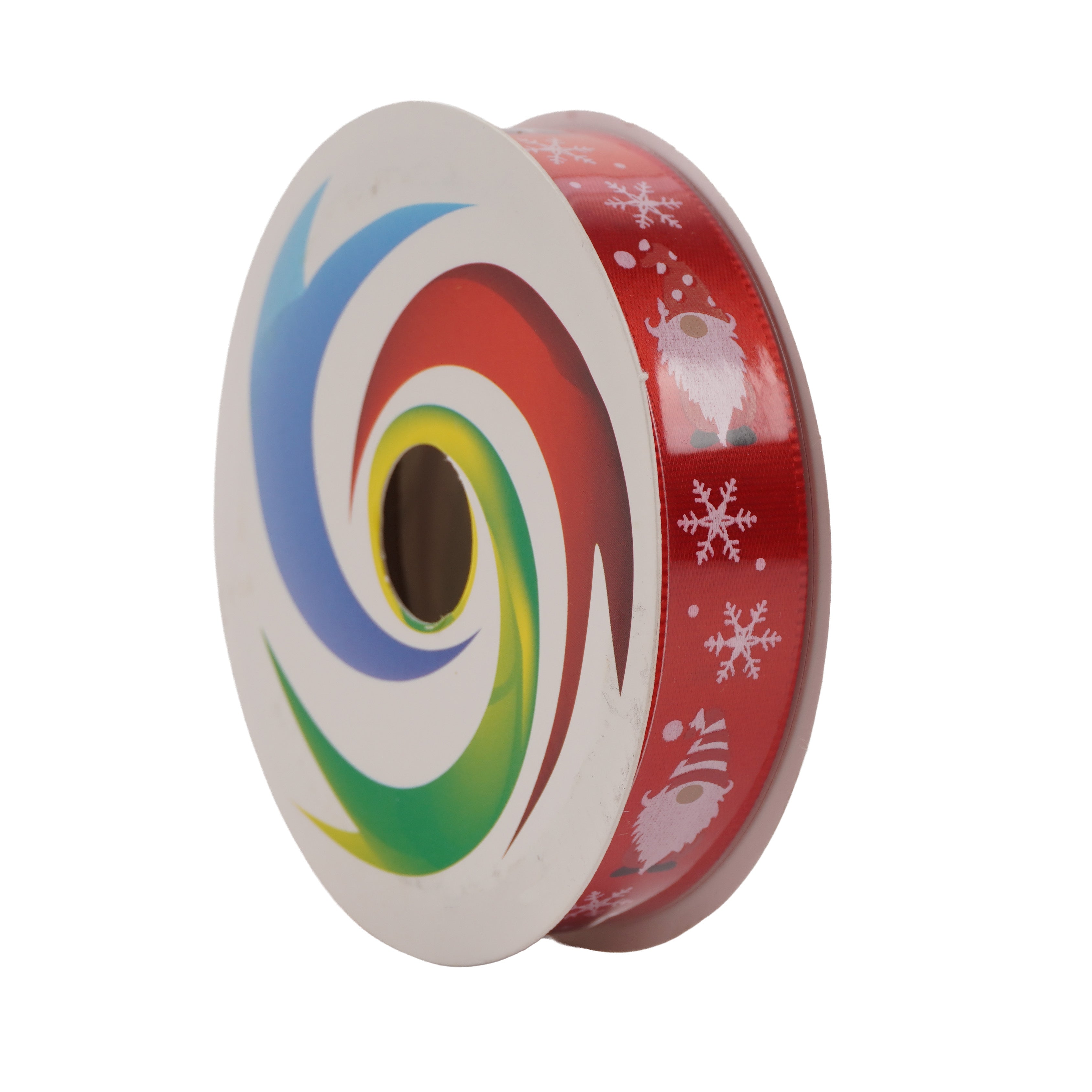 Christmas Printed Satin Ribbon Gnomes 1.8mm X 2.7mtr 1pc