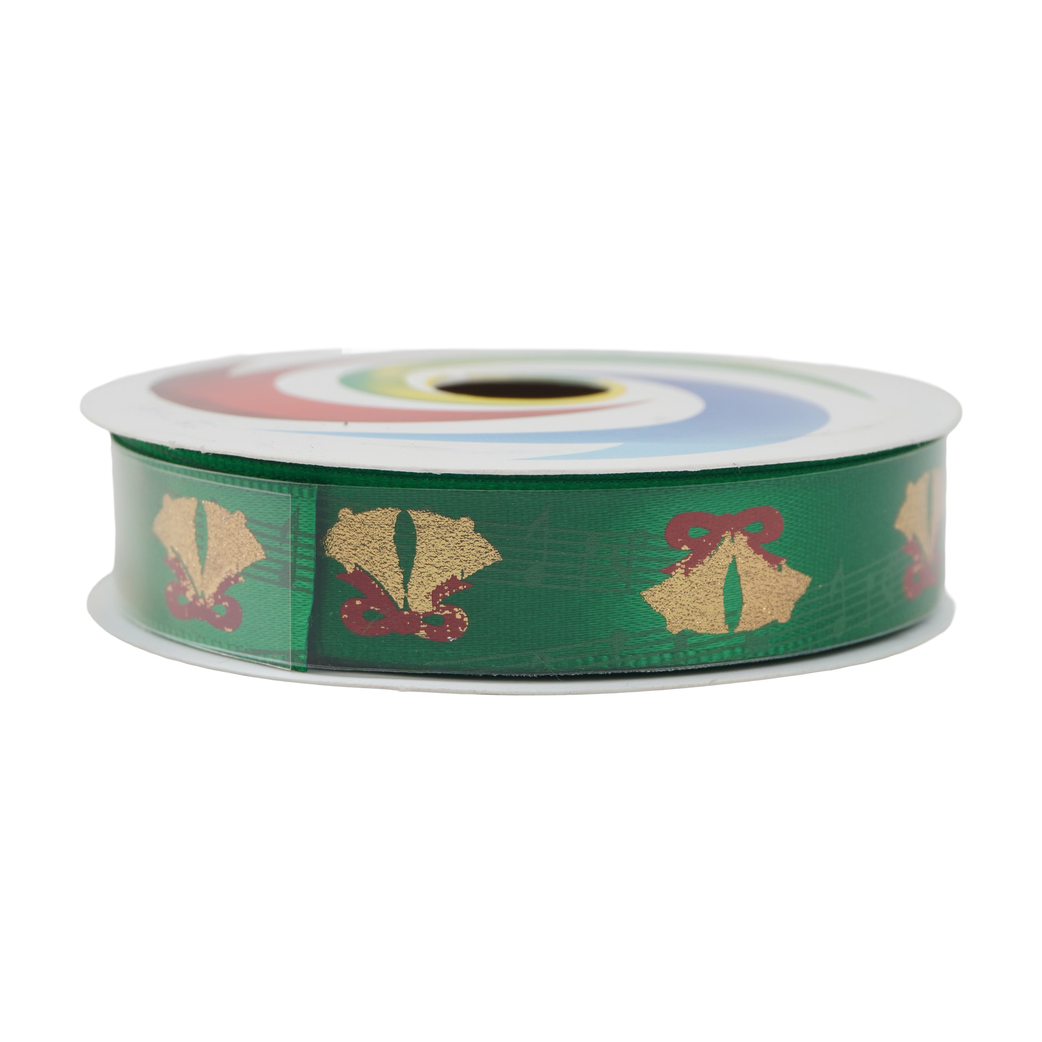 Christmas Printed Satin Ribbon Bells 1.8mm X 2.7mtr 1pc