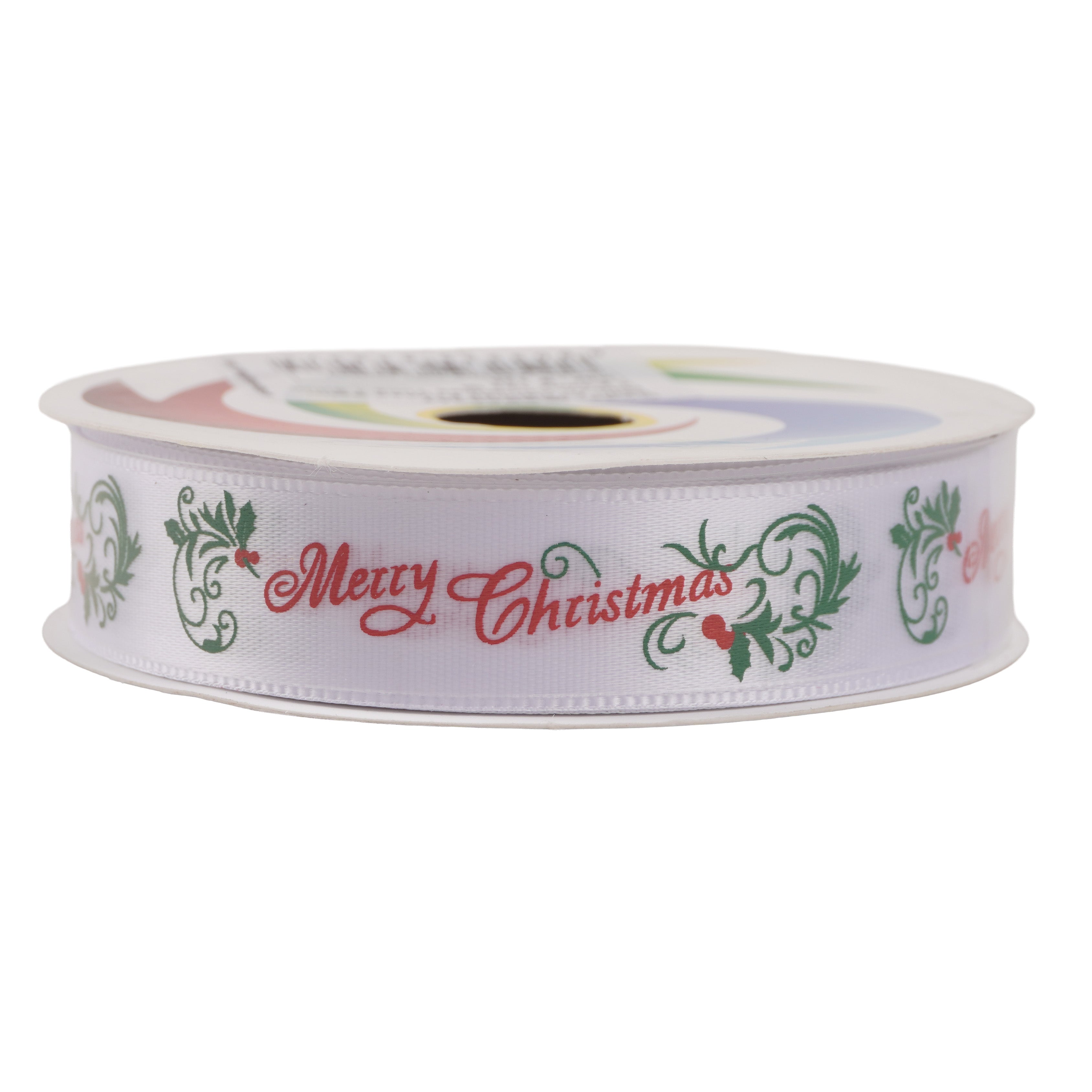 Christmas Printed Satin Ribbon Merry Christmas 1.8mm X 2.7mtr 1pc