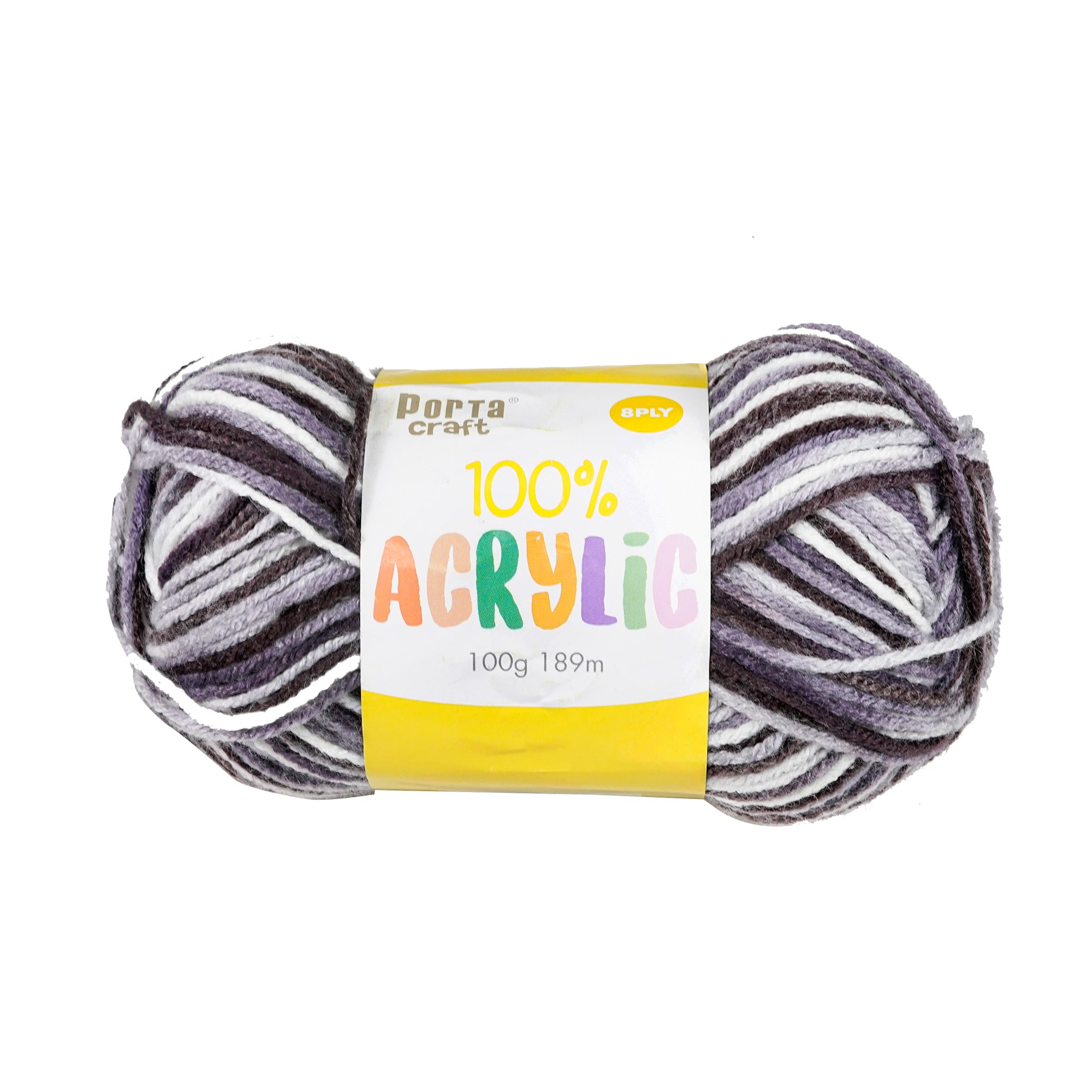 Porta Craft Acrylic Yarn 100% 100gm 189m 8ply Multi Charcoal