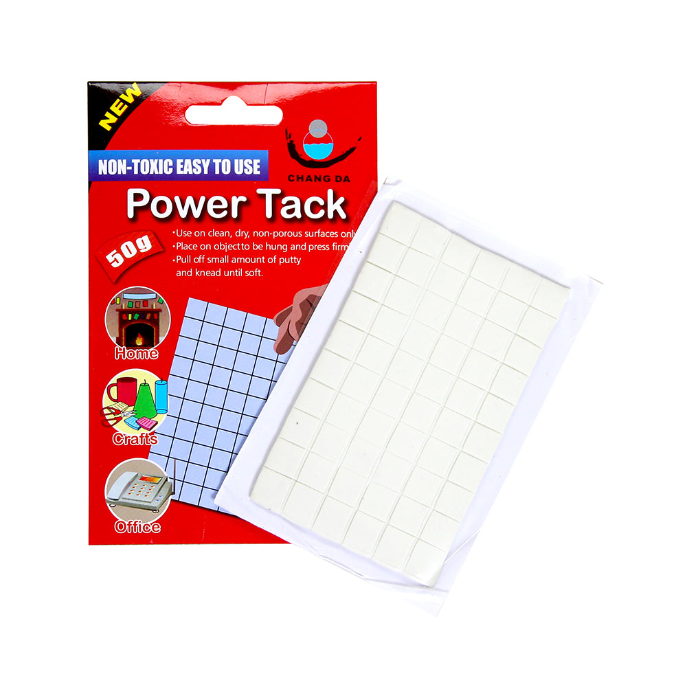 - Power Tack is a wonderful reusable adhesive for papers, glass, metals, walls or other surfaces