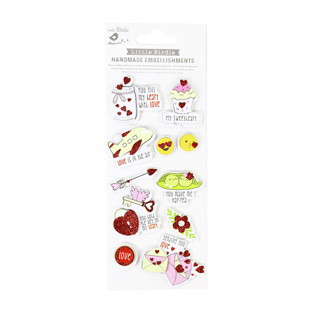 Little Birdie 3D Glitter Stickers - Key To My Heart, 11pc