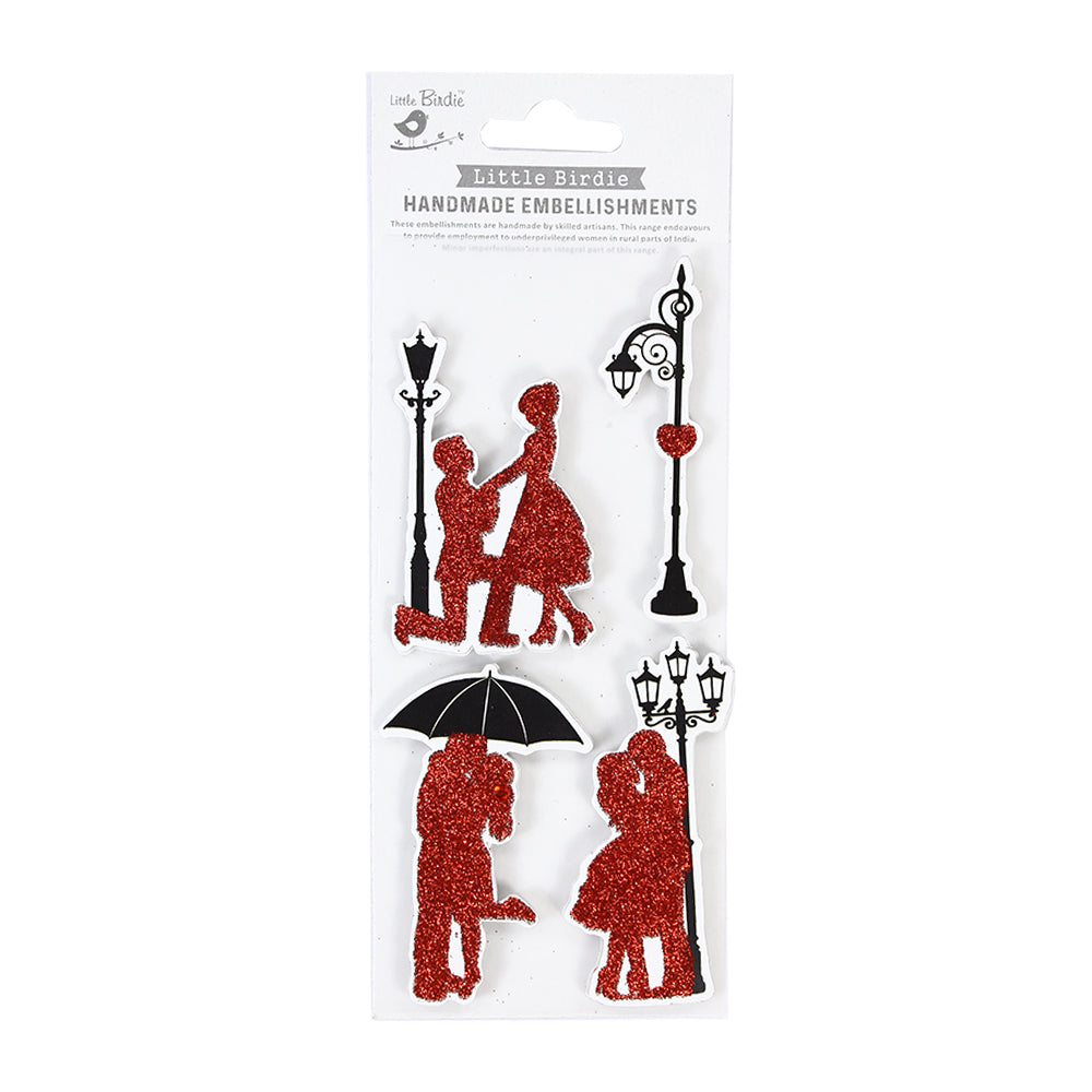 Little Birdie 3D Glitter Stickers - Love Forever, 4pc