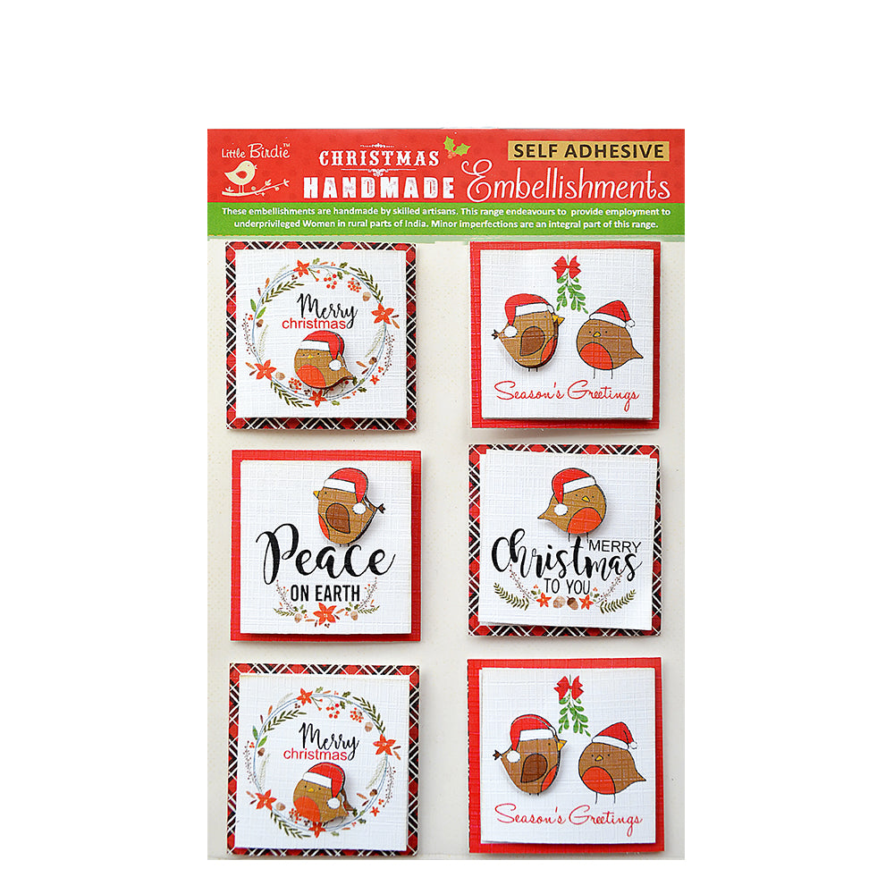 Little Birdie Christmas Stickers - Cute Birds, 6pc