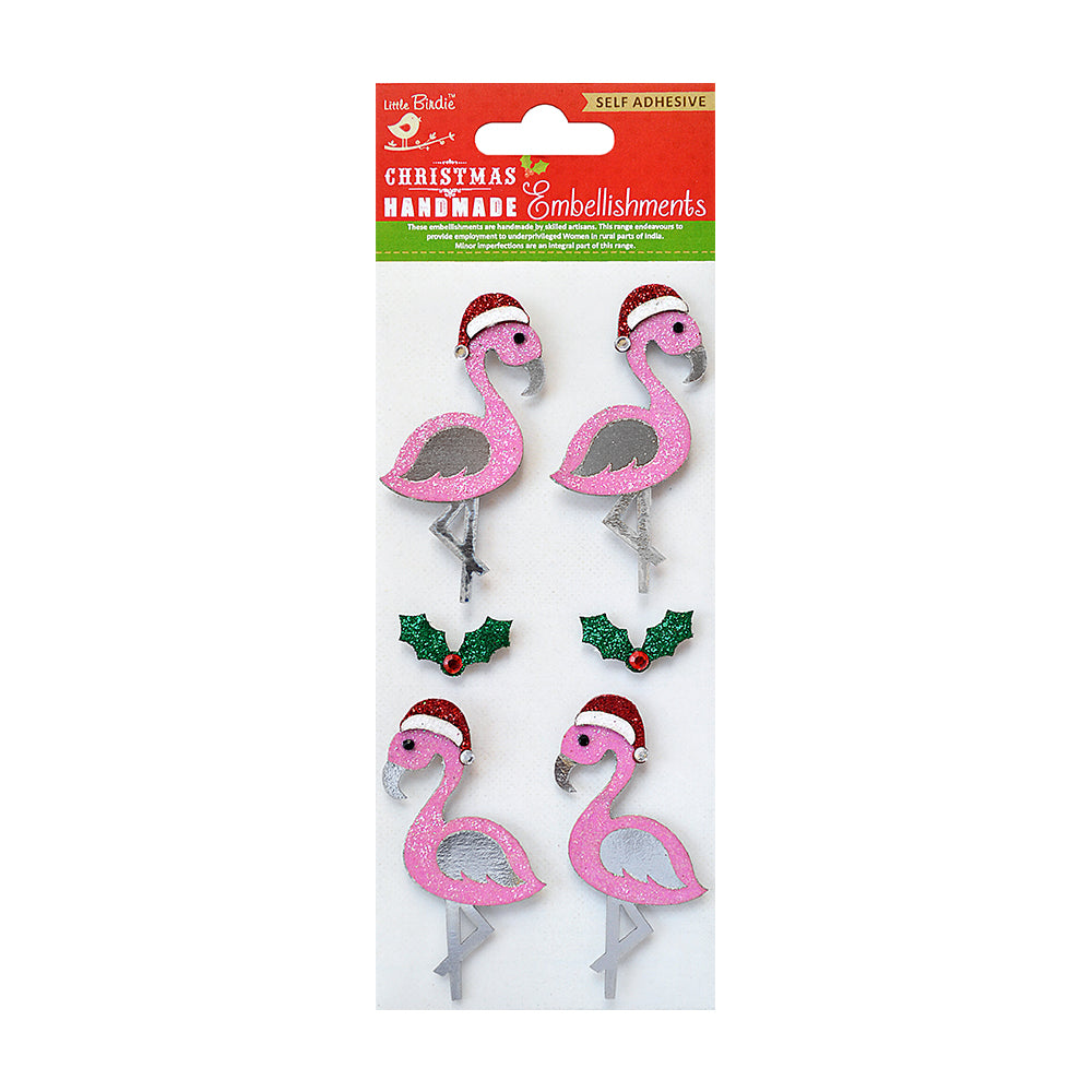 Little Birdie Christmas Stickers - Fancy Flamingo, 6pc