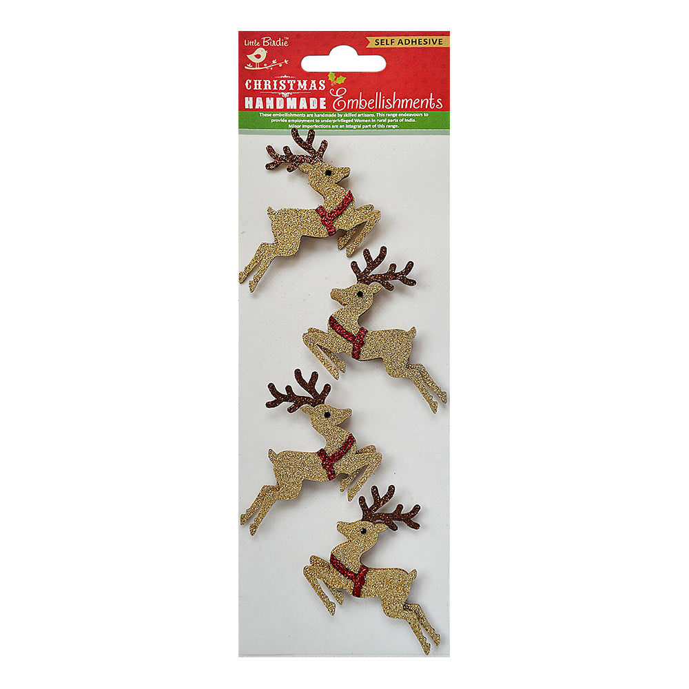 Little Birdie Christmas Stickers - Glitter Reindeer, 4pc