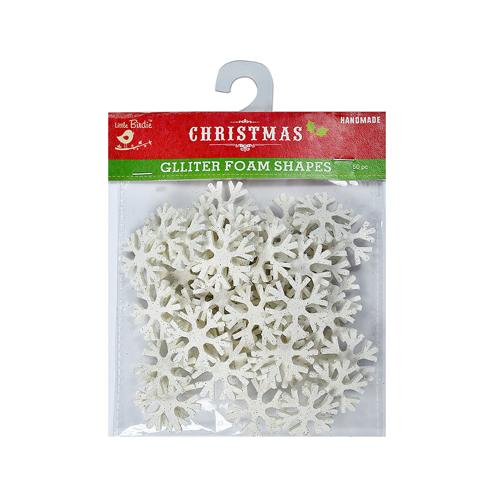 Little Birdie Christmas Stickers - Glitter Snowflake, 50pc