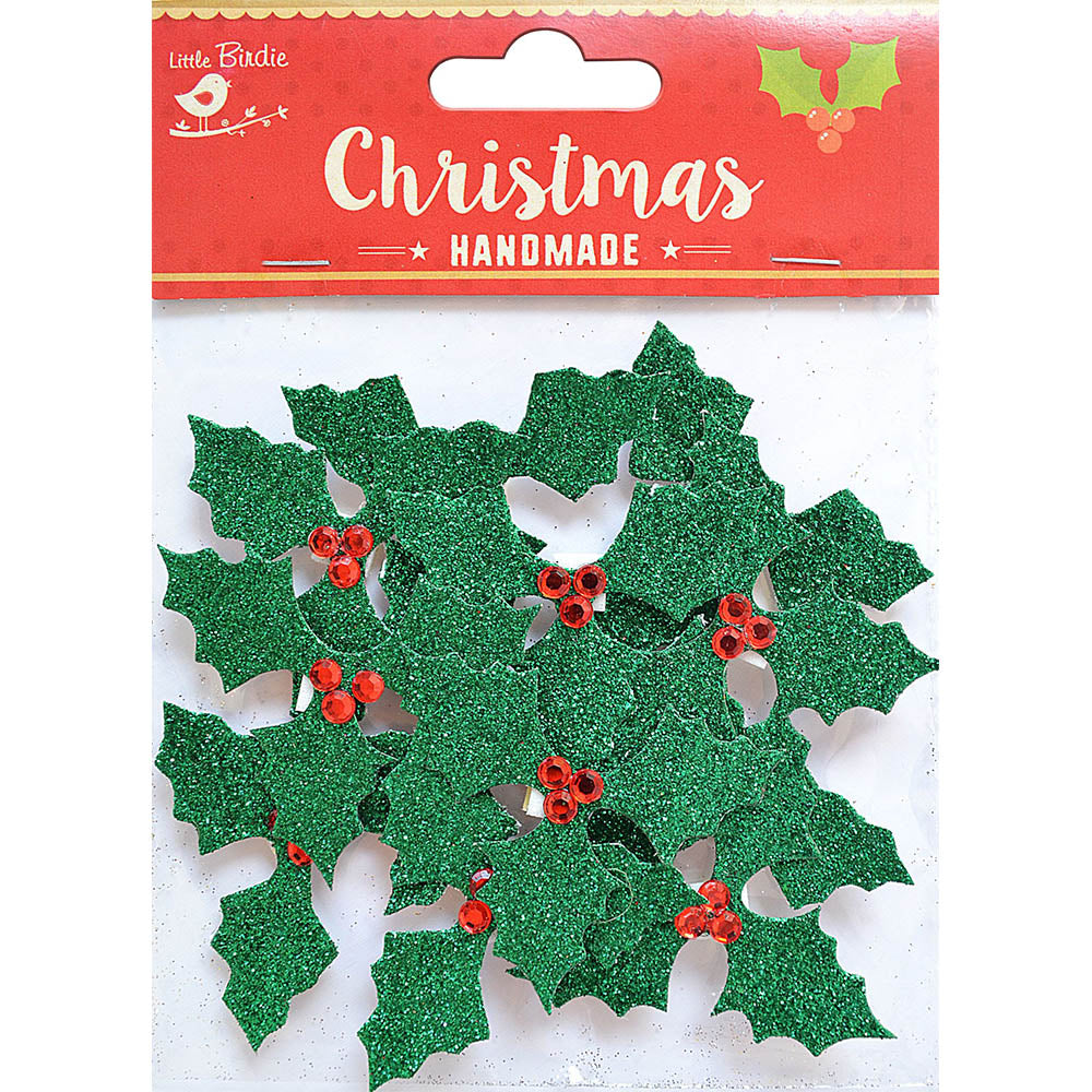Christmas Stickers - Holly Jolly, Green Glitter Holly, 12Pc