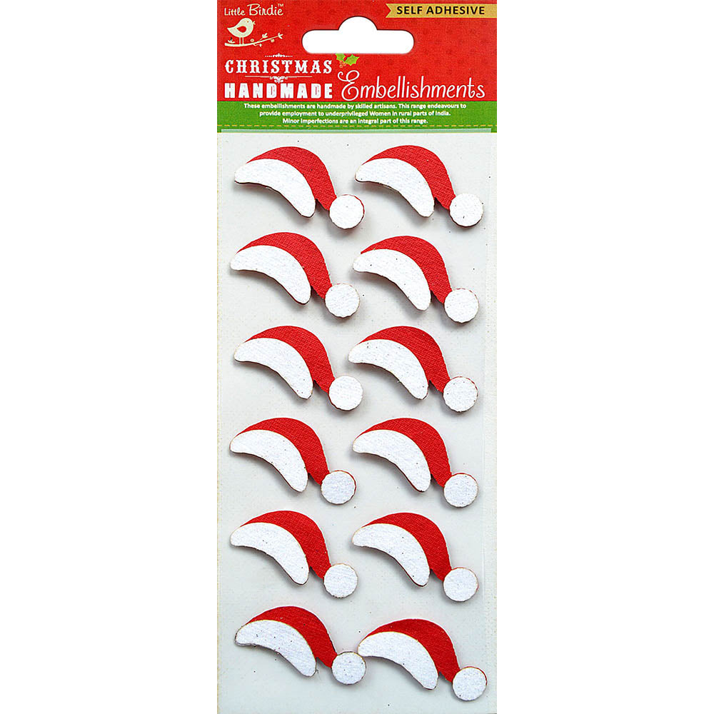 Christmas Glitter Stickers - Santa Claus Hat, 12Pc