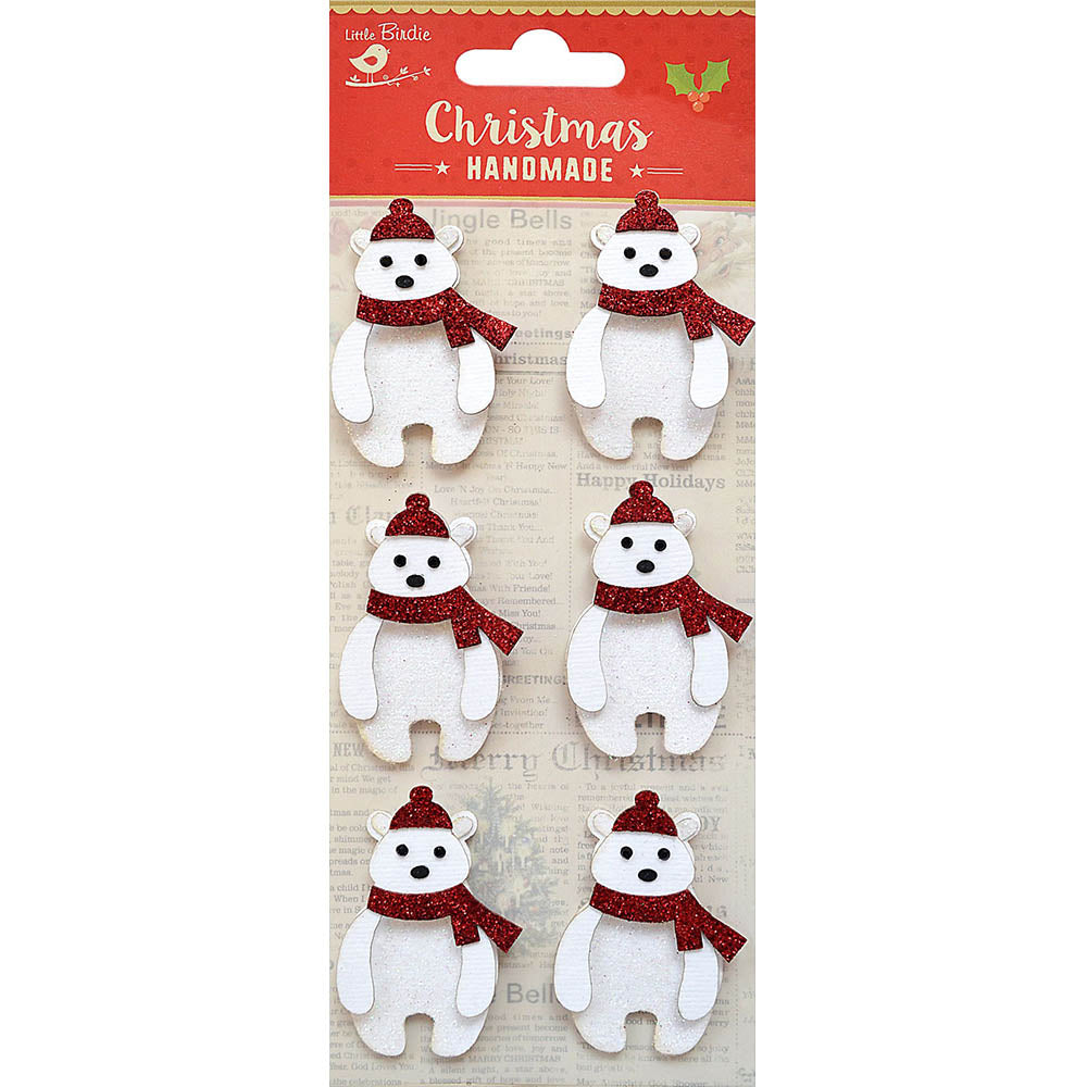 Christmas Glitter Stickers - Polar Bear, 6Pc