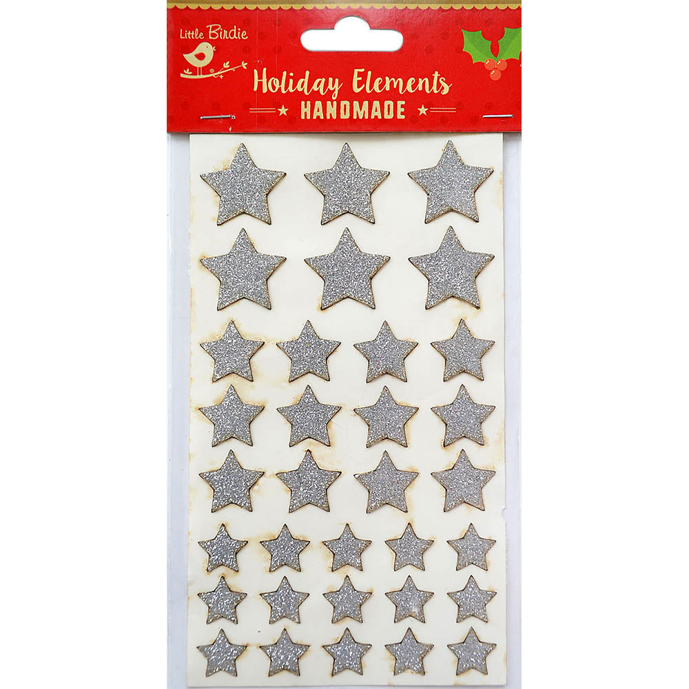 Christmas Glitter Sticker Stickers - Silver Stars, 33Pcs
