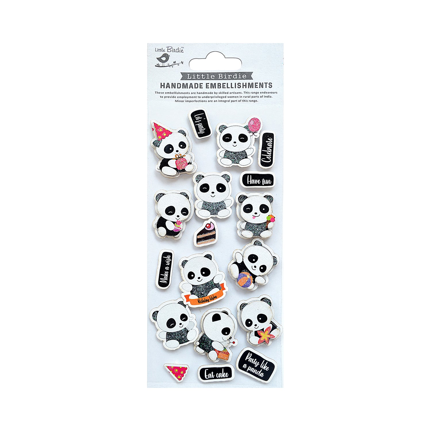 Stickers 3D Glitter Panda Party 18pc