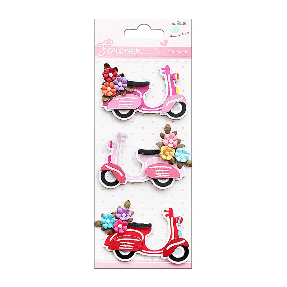 - Adhere these cute Scooters laden with Florals to add extra focus to your Scrapbook layouts, Albums, Journals, Valentine Cards, Albums, Gift boxes and more. Add these with our other coordinating mini embellishments for better visual interest.