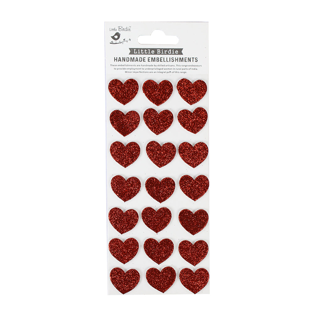 Little Birdie Self-adhesive Glitter Stickers - Ruby Hearts, 21Pc