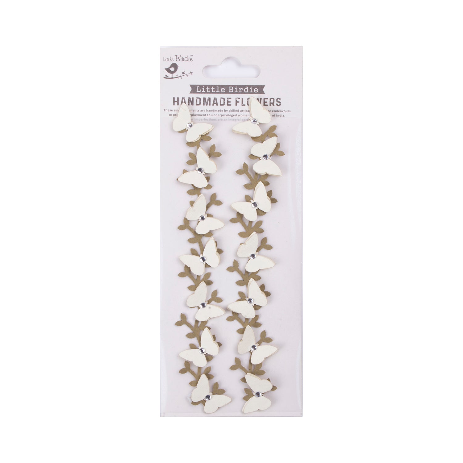 Handmade Stickers Jewel Butterfly Vine Off-white 2pc