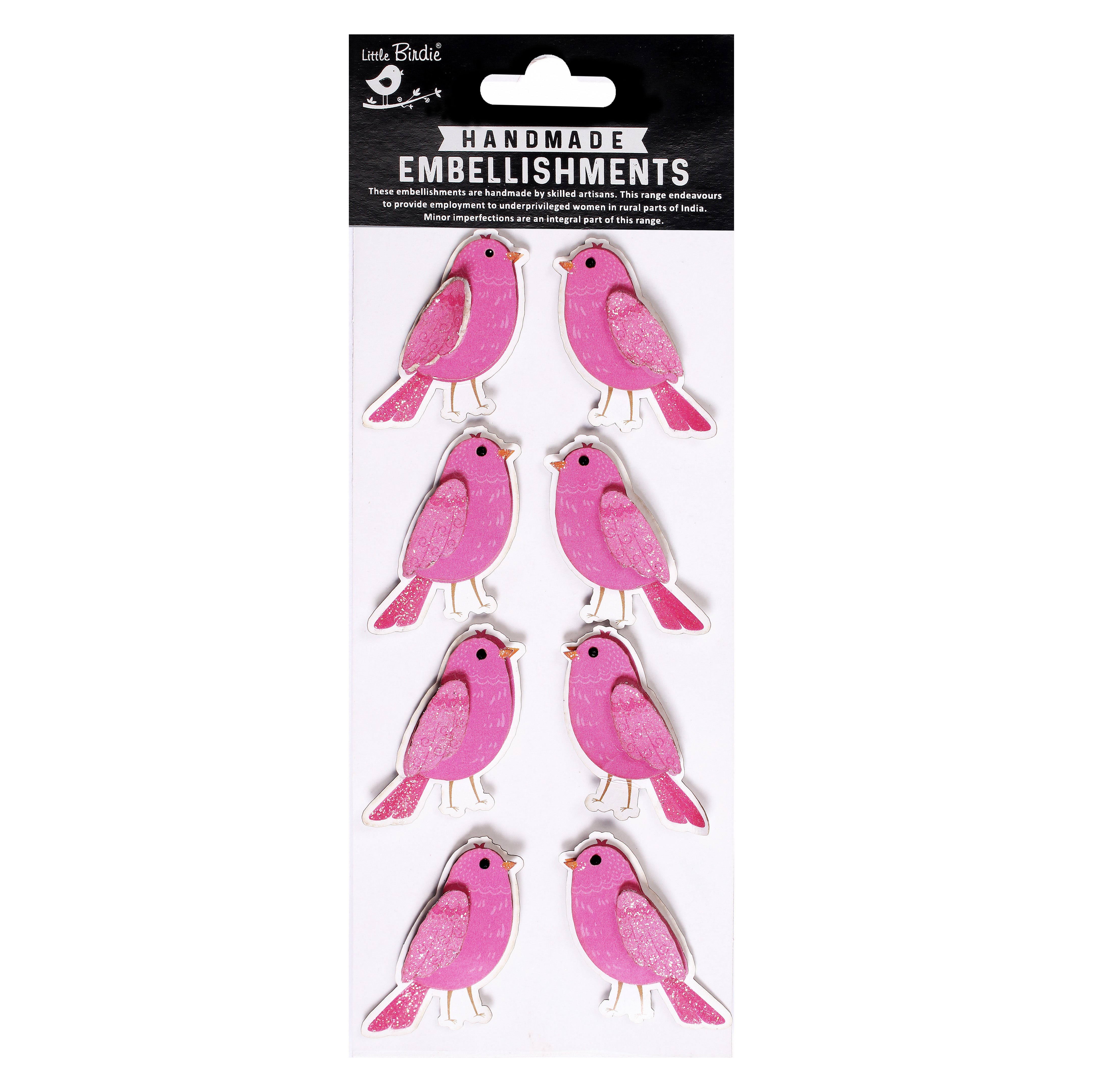 Handmade Stickers - Tweet Birdies, Rosy Blush 8pc