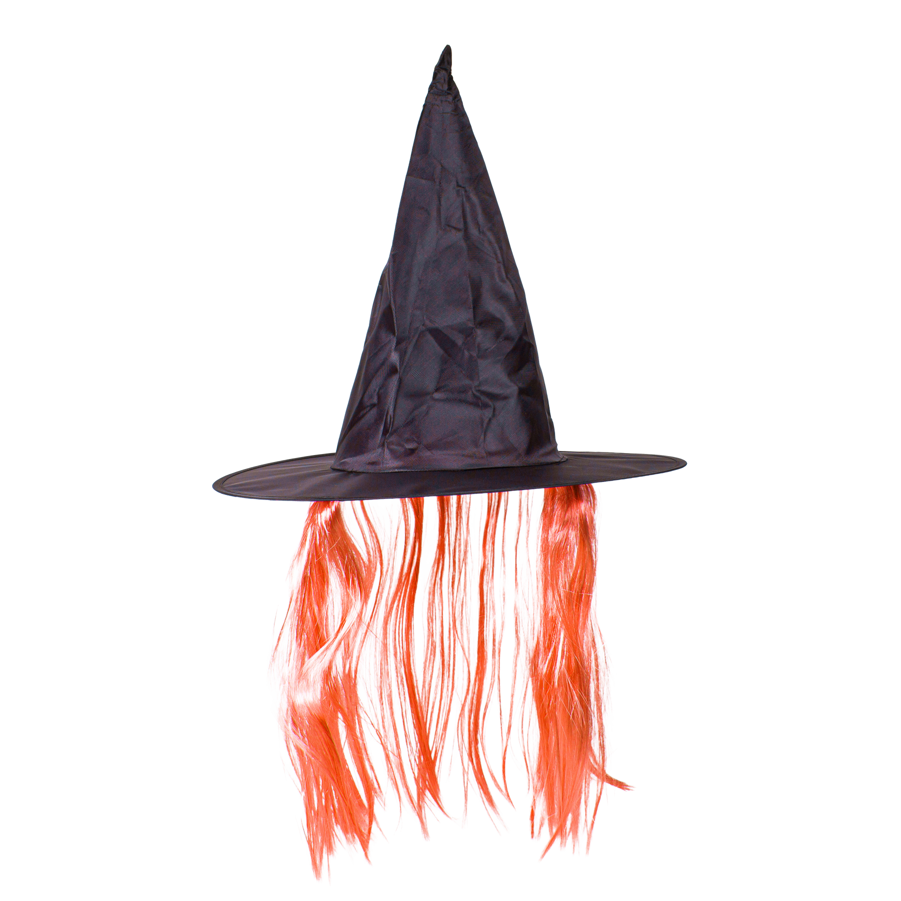 Cast a spell this Halloween with this tall, pointed witch hat featuring flowing hair extensions – a perfect pick for costumes and cosplays! 🧙♀️✨