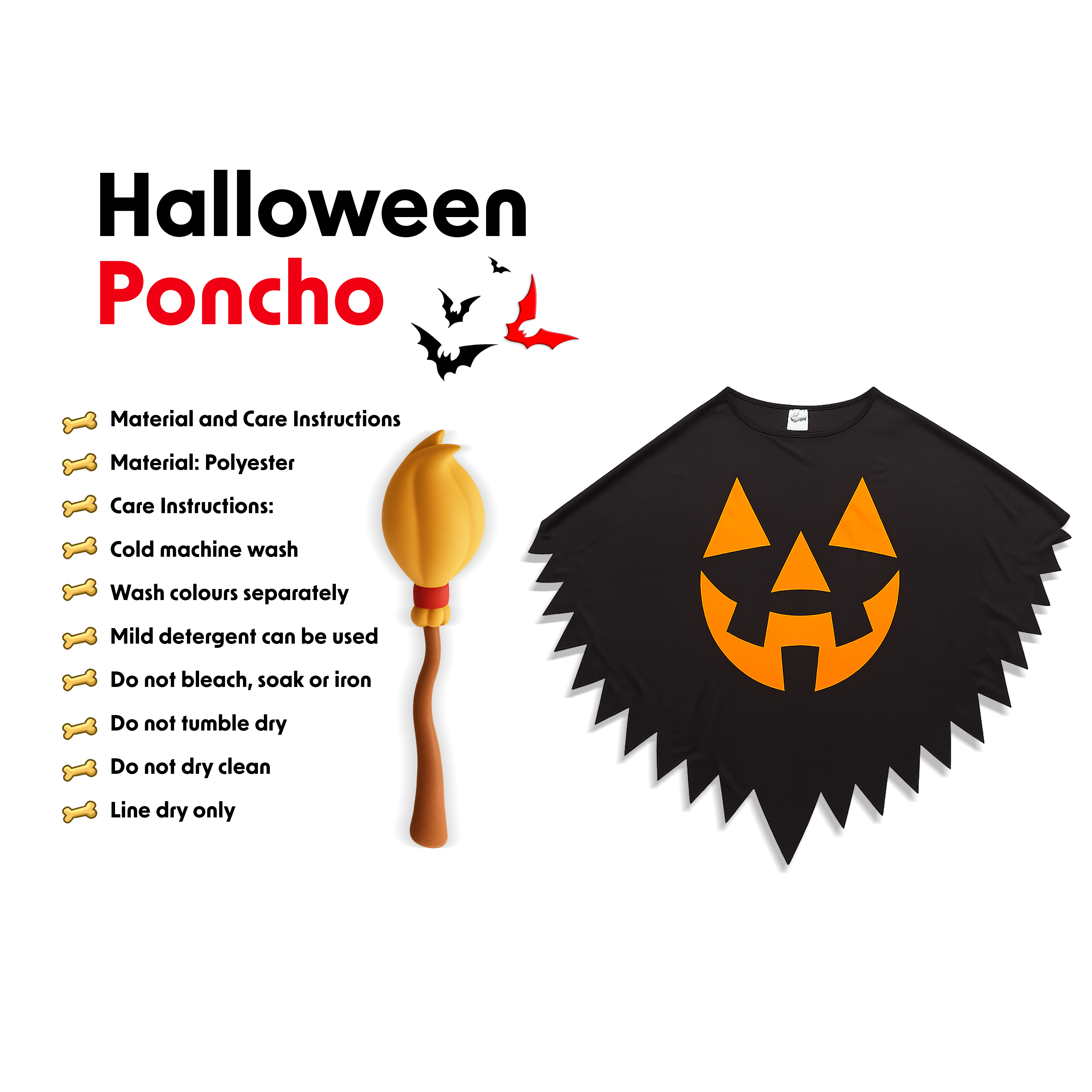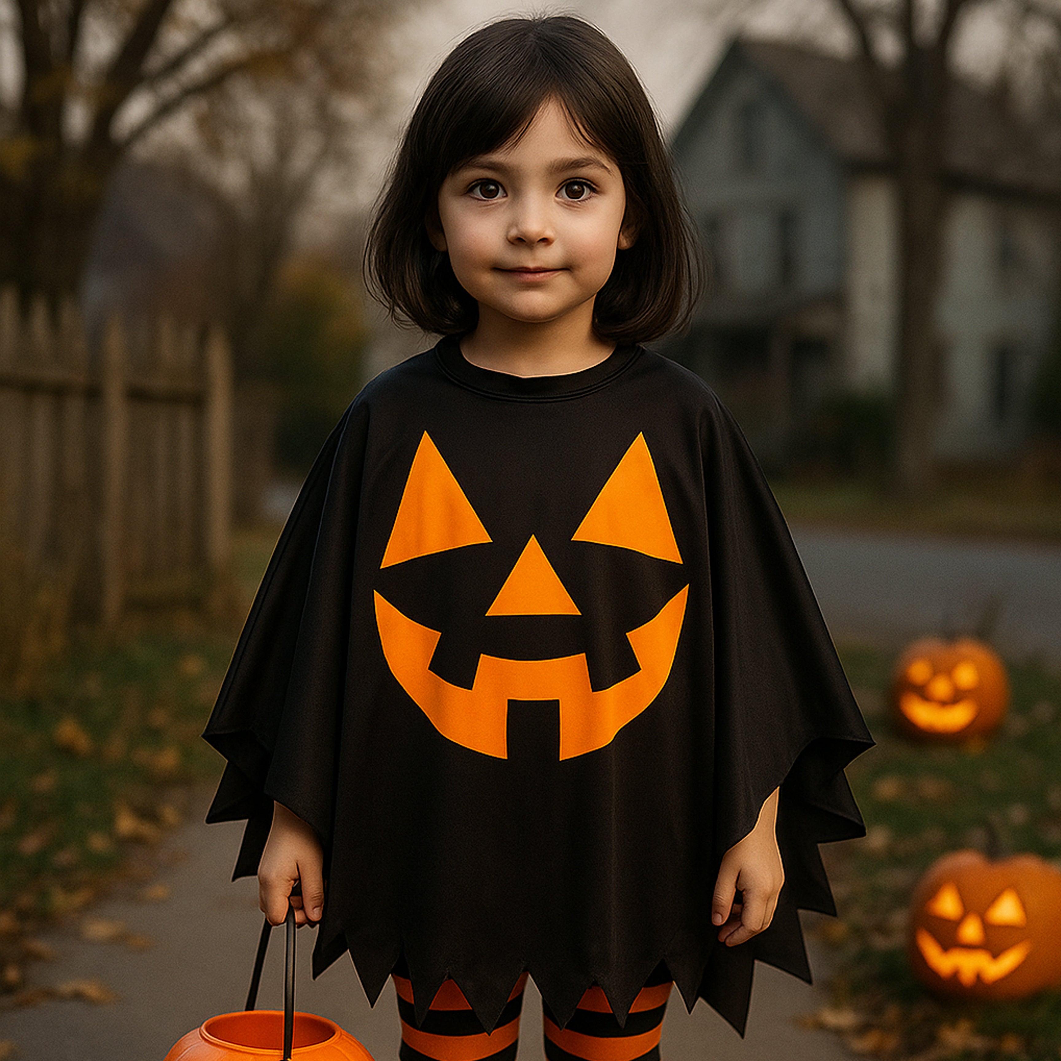 Halloween Poncho for kids Carved Pumpkin 1pc