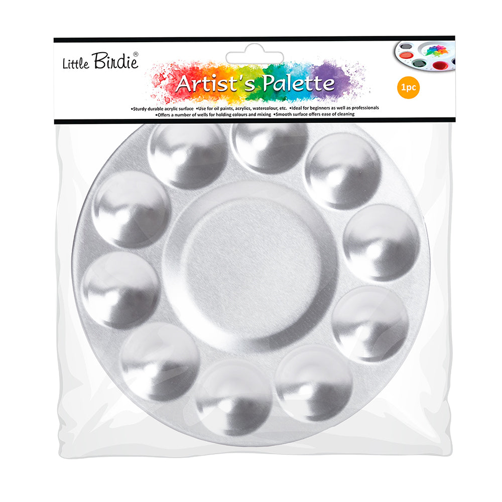 This high-quality Artist Aluminium Palette is designed for creative professionals and beginners alike. Featuring a round design with 11 wells, this palette offers ample space to organize and mix your colors efficiently. Made from lightweight and durable aluminum, it is easy to handle and resistant to rust, ensuring long-lasting performance.