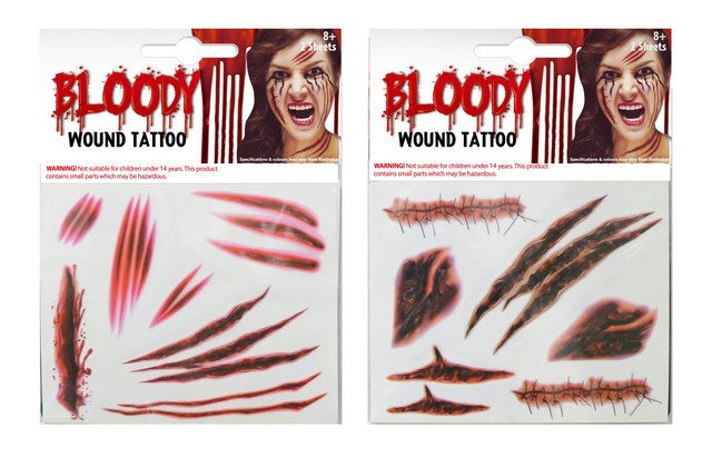 - It's easy to dress up with a frightful look anytime with these bloody wound tattoos in your collection