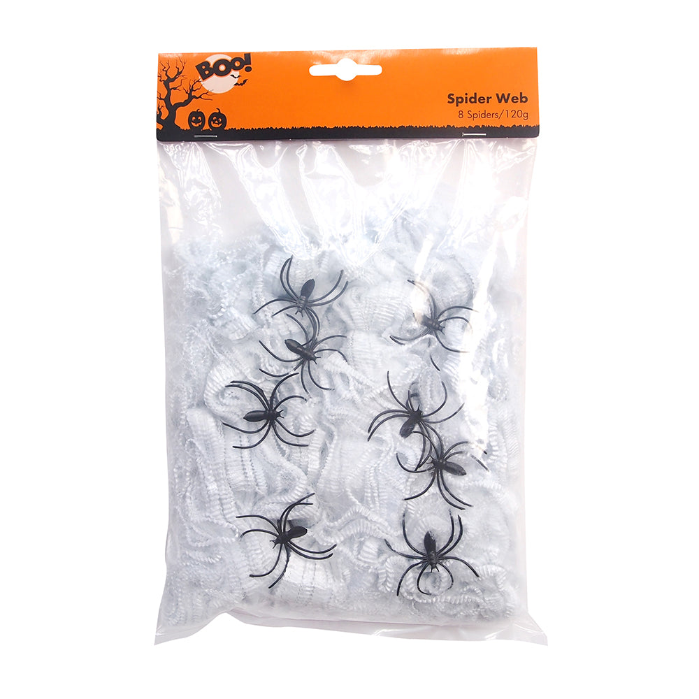 Boo Spider Web - 8 spiders, 120g web
