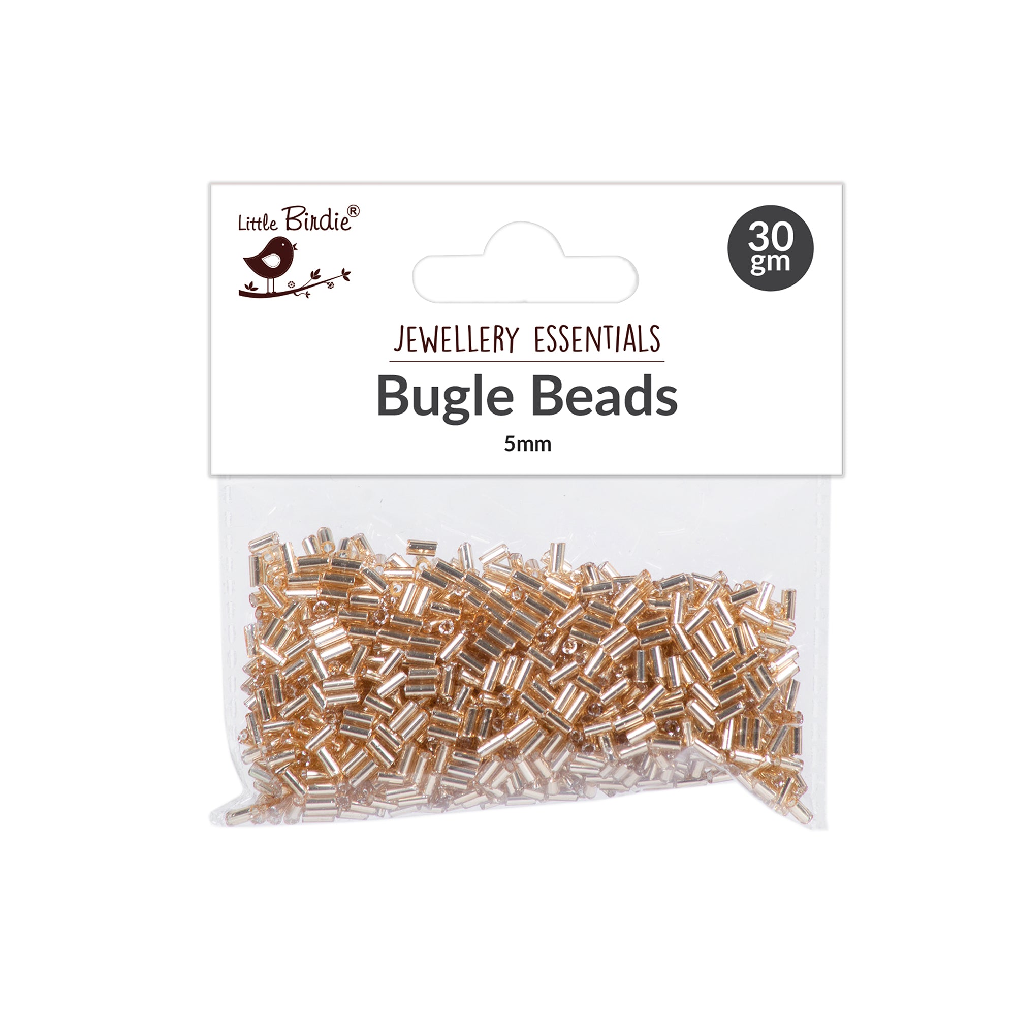 Bugle Beads Gold 5Mm 30Gm