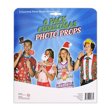 - Pack includes these props - Snowman Hat, Santa Claus Moustache, Santa Claus Hat, Clown Hat, I've been Nice and I've been Naughty.