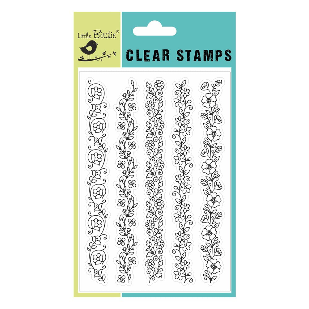- This is a 4.5" X 6.5" Clear Stamp set containing 5 Borders Blooms.