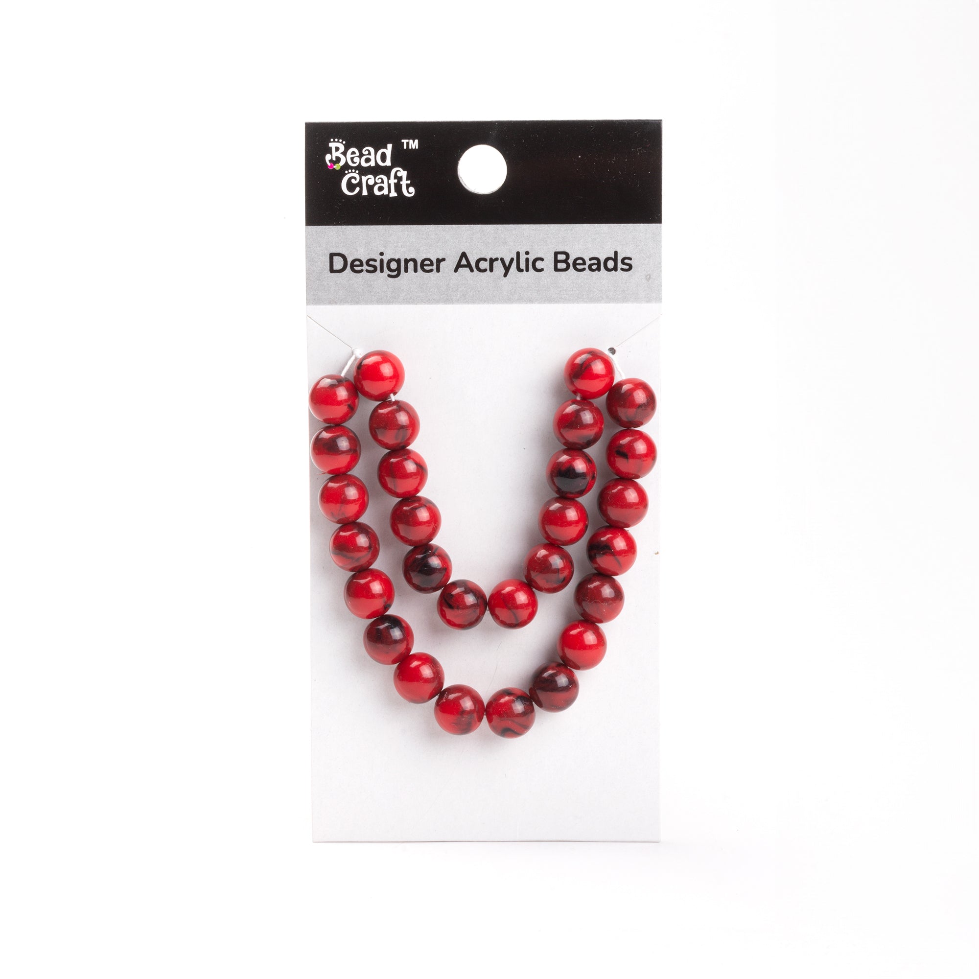 Designer Acrylic Beads Red Marble Approx 25gm 1 String (Small)