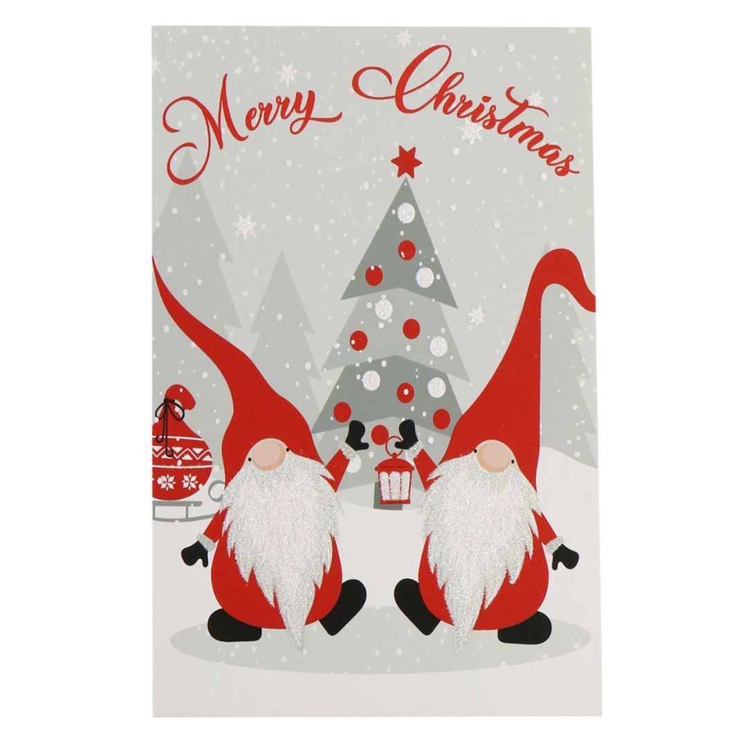 Christmas Glitter Greeting Card & Envelope Christmas Gnomes 11.8 X 17.8cm 1pc