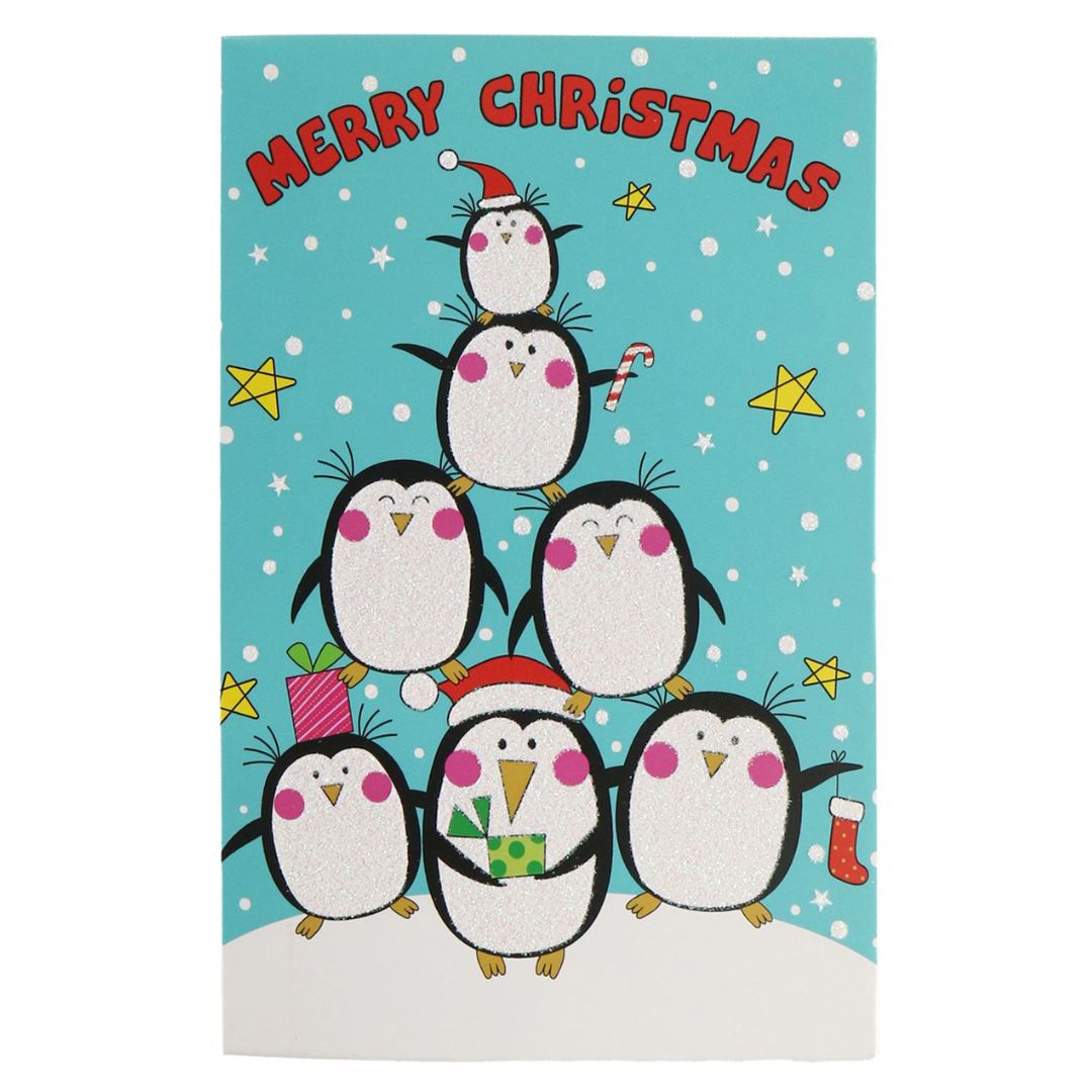Christmas Glitter Greeting Card & Envelope Christmas Penguins 11.8 X 17.8cm 1pc