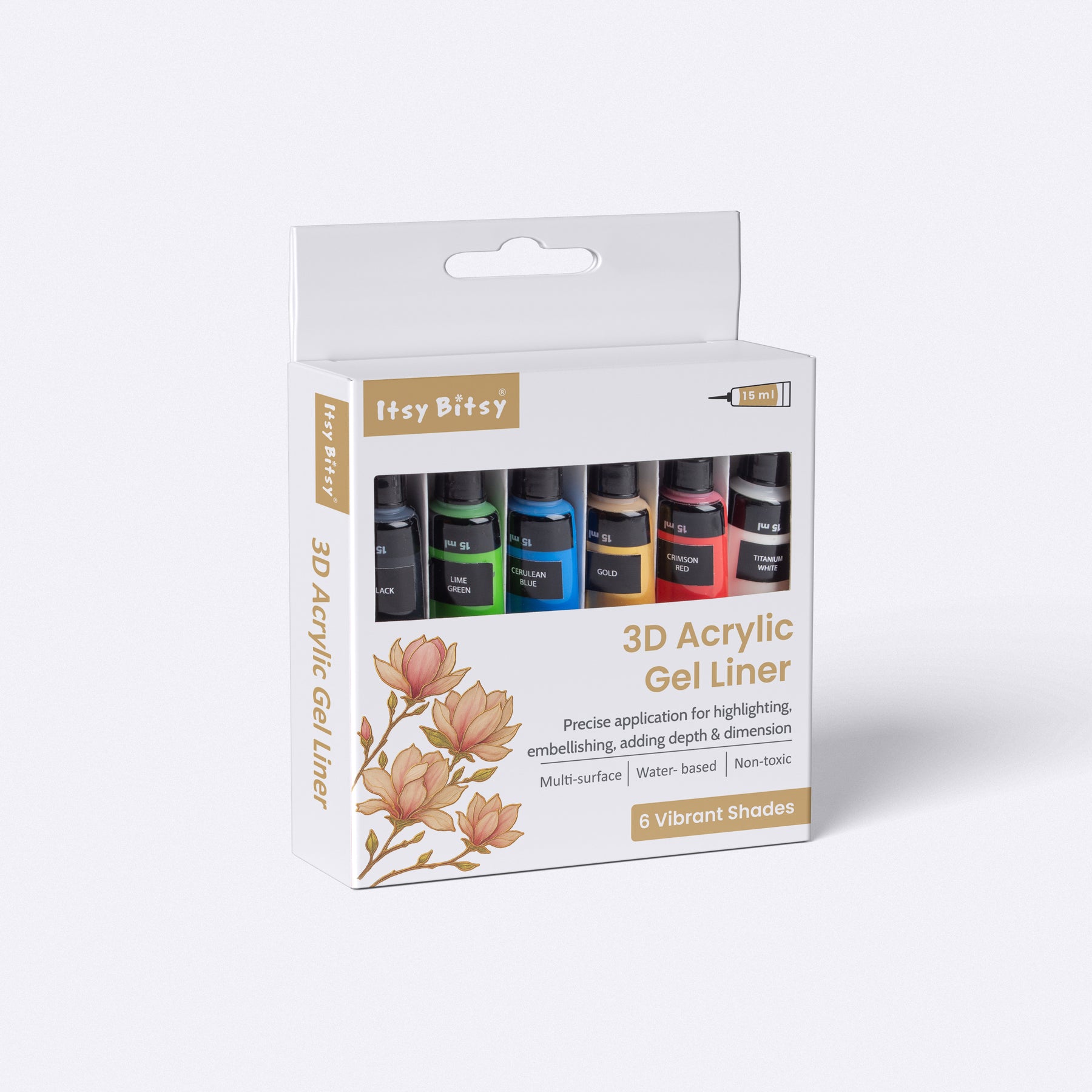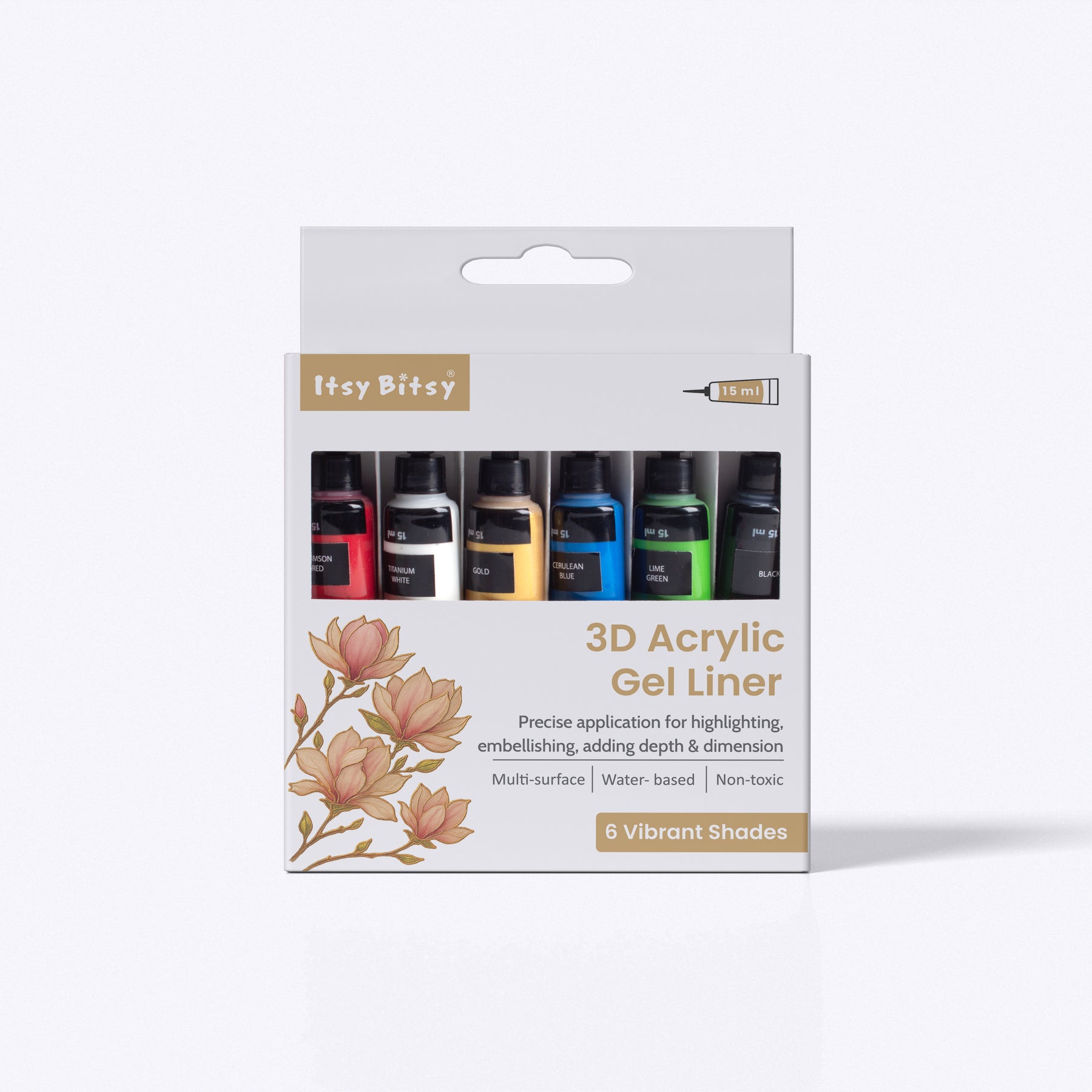 Add bold dimension and creative flair to your artwork with this 3D gel liner paint set. Specially formulated for smooth flow and raised effects, these liners are perfect for outlining, detailing, lettering, and embellishing across a variety of craft projects. Ideal for artists, DIY enthusiasts, and hobby crafters looking to make their designs stand out.