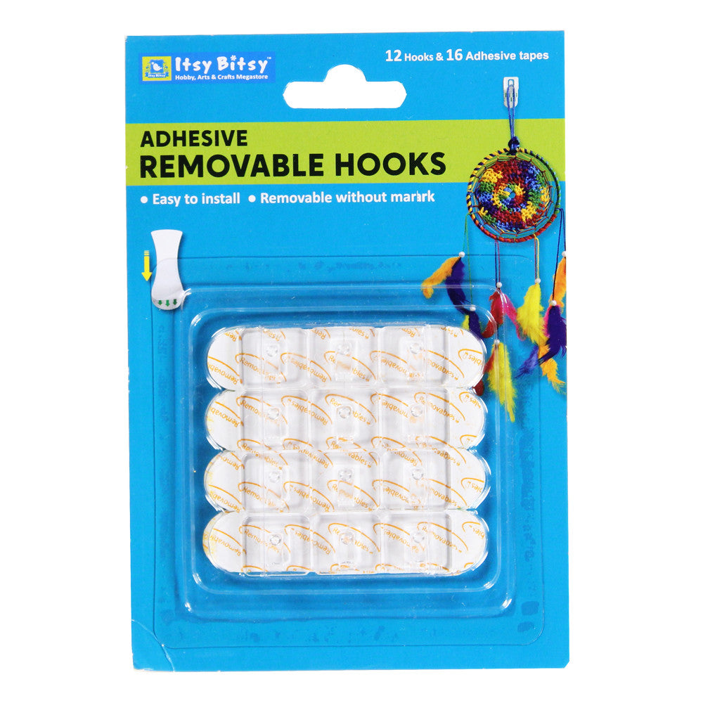 - These removable adhesive hooks are the ideal solution for hanging lightweight objects without having to drill holes for hooks You can place them on your window panes, mirrors, smooth tiles, cupboards to hang decorative objects, small towels etcThese versatile hooks come handy around the house, office, school, shop to hang and organize thingsThese hooks can be removed without leaving any ugly marks. Can also be reused with new adhesive tapesThese transparent adhesive hooks are a great solution when you want an almost-invisible solution to hang things