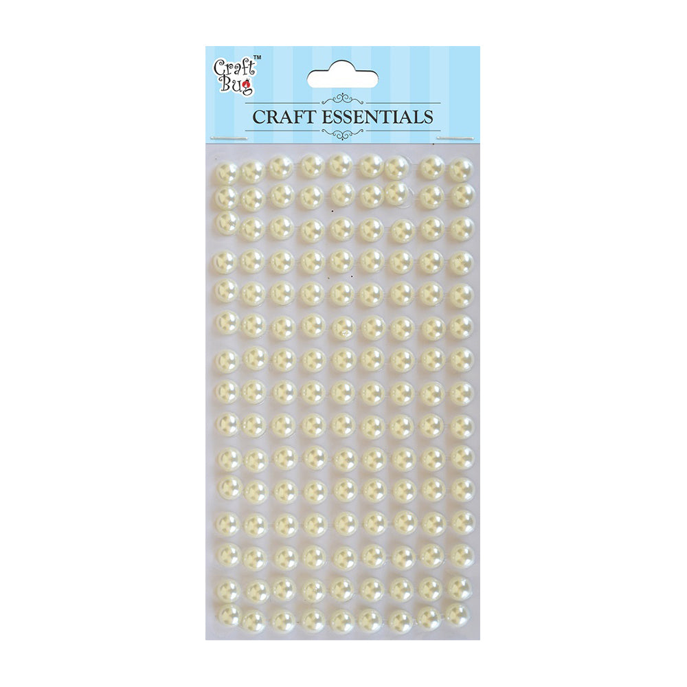 Self-adhesive Plastic Half Pearl - White, 8mm, 120Pc
