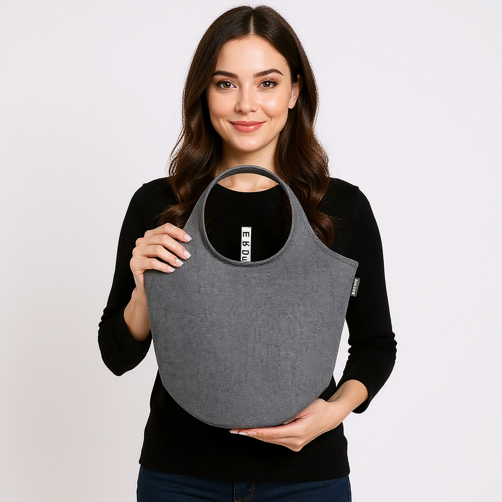 Round Base Designer Tote Bag Dark Grey 17 x14 1pc