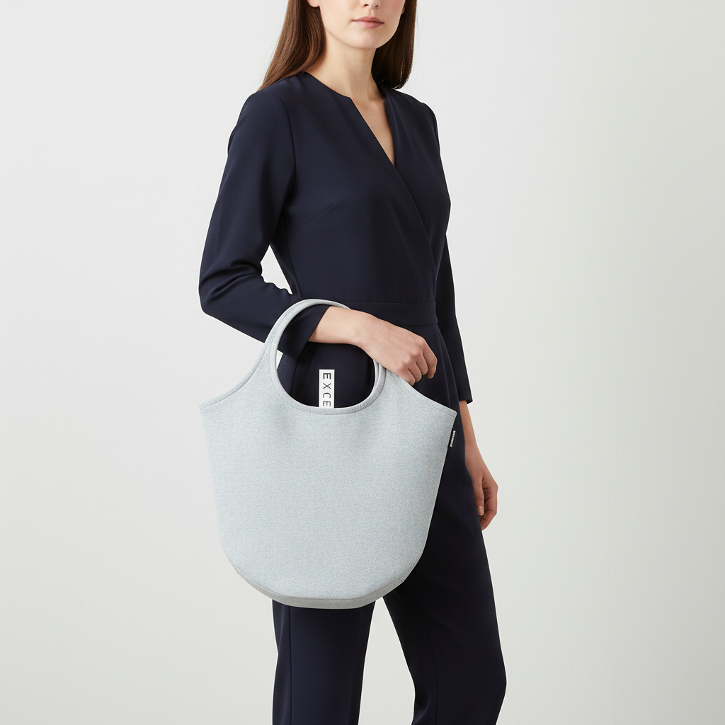 Round Base Designer Tote Bag Light Grey 18 x 14.5 1pc