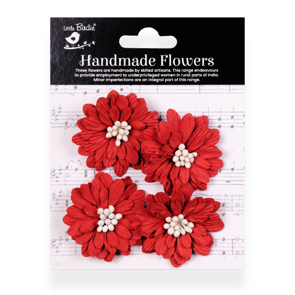 Handmade Flowers Cardinal Red Astra Approx 5Cm 4Pc
